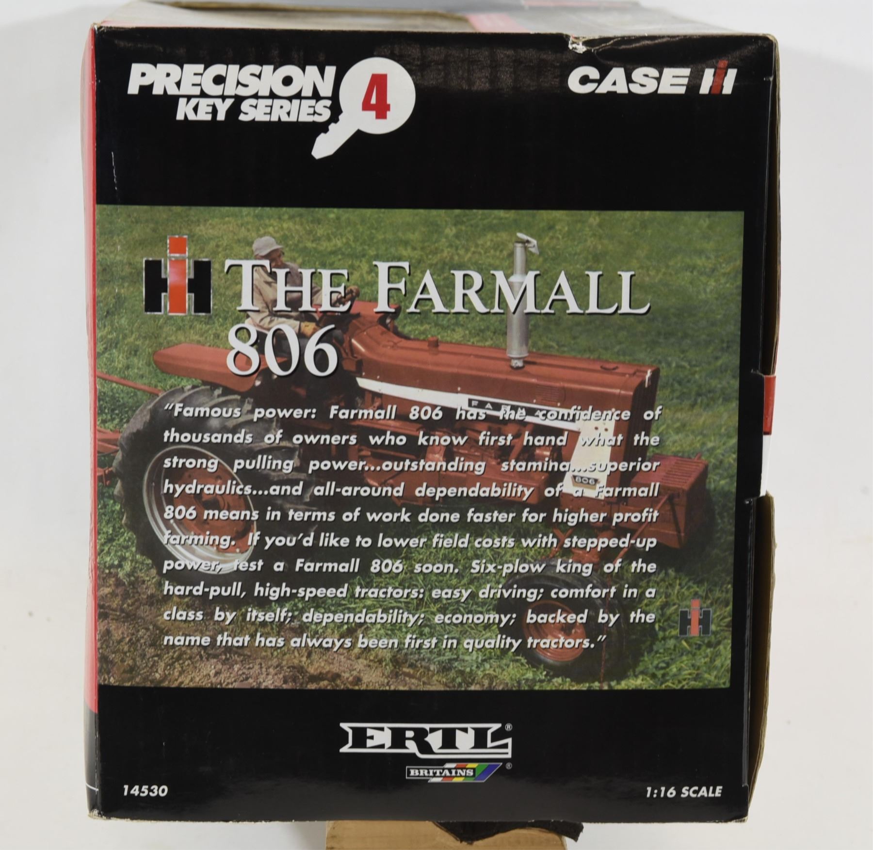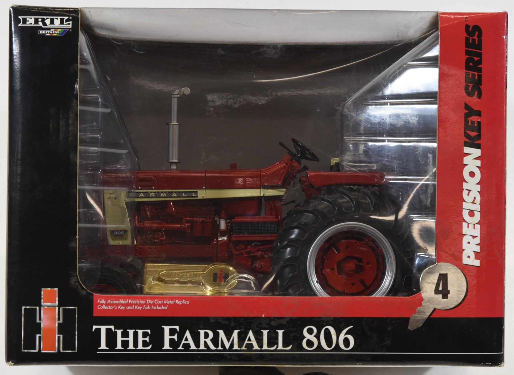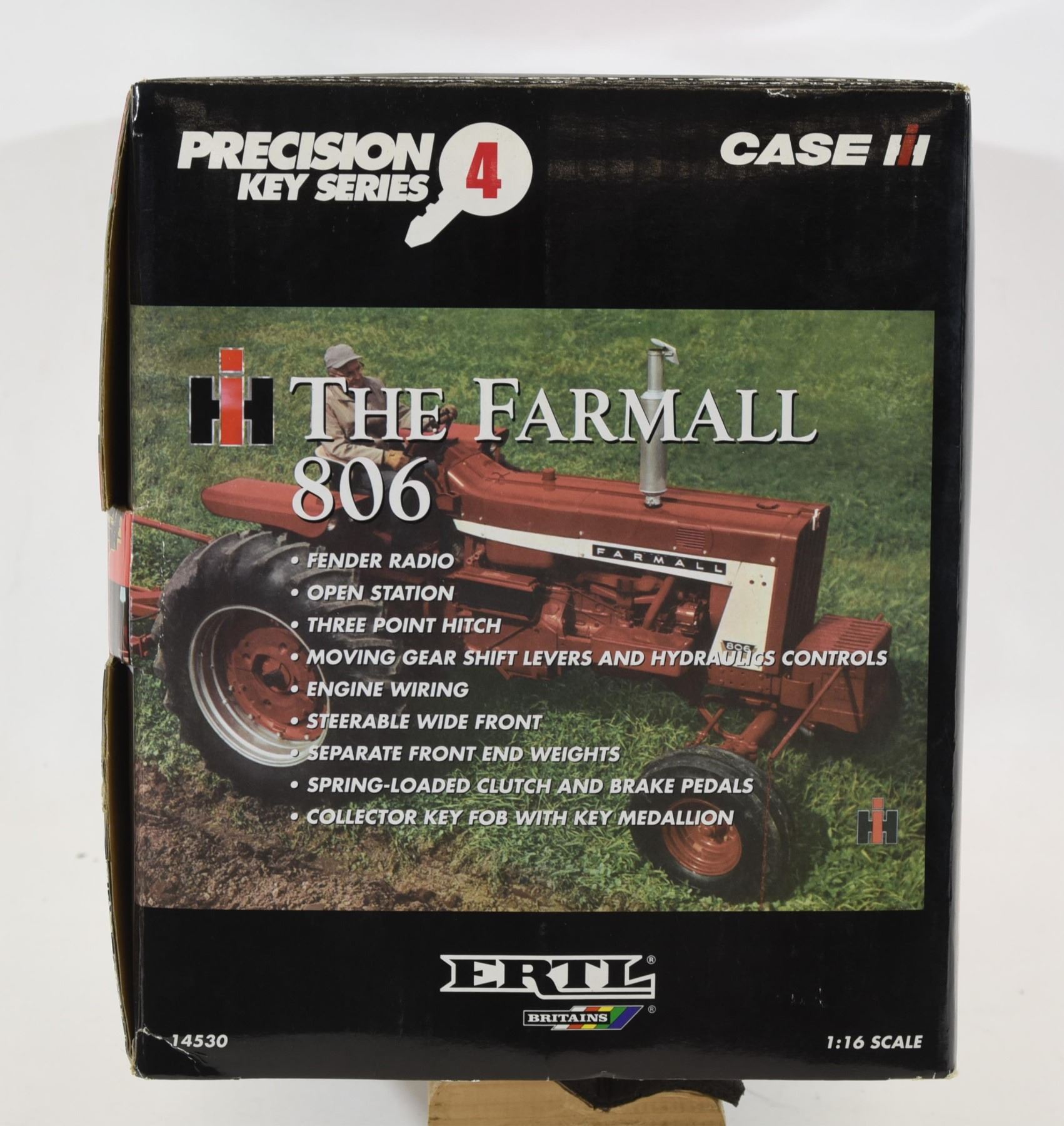 1/16th scale die-cast. Has separate front weights, 3-point hitch, moving gear shift levers and hydraulic controls and more. Precision key series with collector key and key fob. As new in original package.