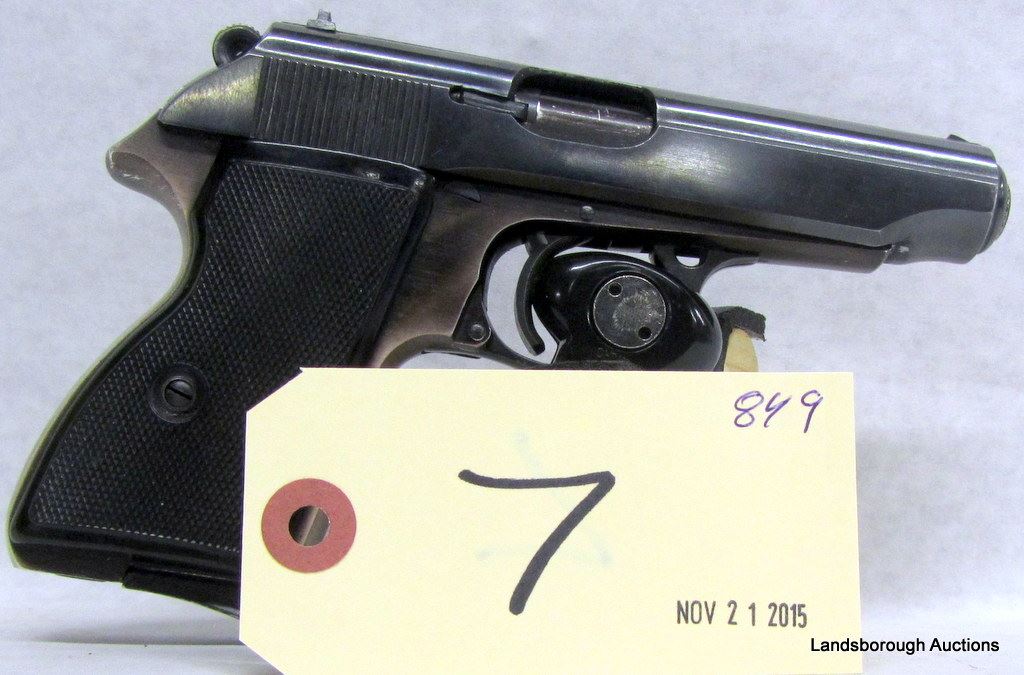 PROHIBITED, SEMI AUTO, 7.65MM, 98MM BARREL, SN BB68390. GRIPS GOOD, BLUING WORN OFF FRONT AND BACK STRAPS, BORE VERY GOOD. NOT ADMISSIBLE INTO THE USA.