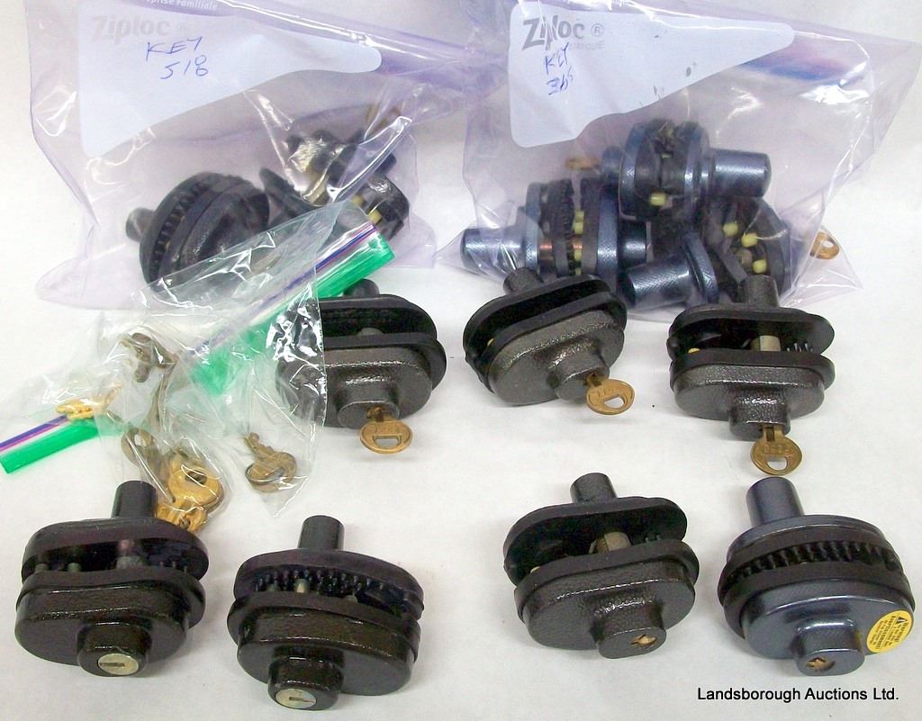 HOGUE GRIP FOR S&W K AND L SQUARE BUTT, PACKMAYR GRIP FOR S&W K SQUARE BUTT, PLASTIC SHOTGUN GRIP, SQUIRES AND BINGHAM 22 MAGAZINE. 12 TRIGGER LOCKS - KEYS 518, 365, 250, 227, 677. 4 WITH UNKNOWN KEY.