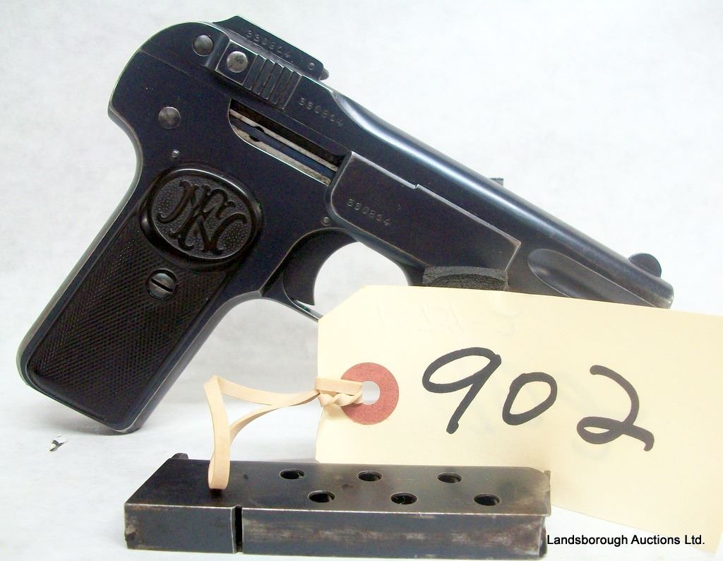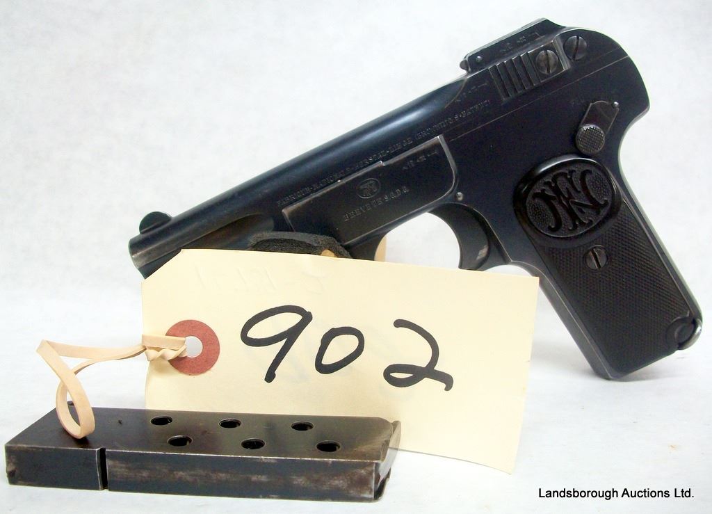 PROHIBITED, SEMI AUTO, 7.65MM, 102MM BARREL, SN 330814. GRIPS GOOD, BLUING TURNING GREY, BORE STAINED. EXTRA MAG.