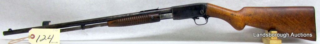 NON-RESTRICTED, PUMP ACTION, 22 LONG, 22" BARREL, SN 3916. WOOD HAS CRACKED WRIST, BLUING IS TURNING BROWN, BORE PITTED, RIFLING EVIDENT.