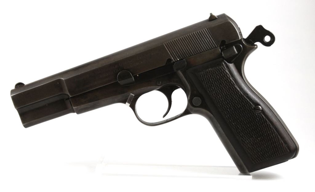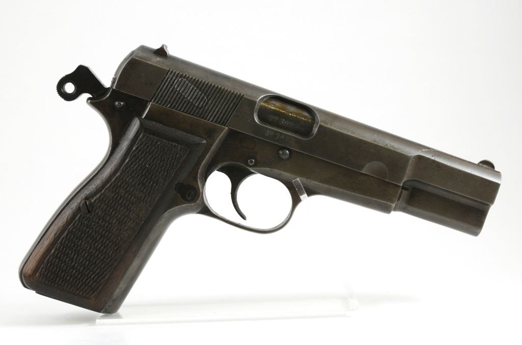 Restricted, semi auto, 9mm Luger, 118mm barrel, SN 173622. Wood grips very good, bluing is brown, bore very good. No Mag.
