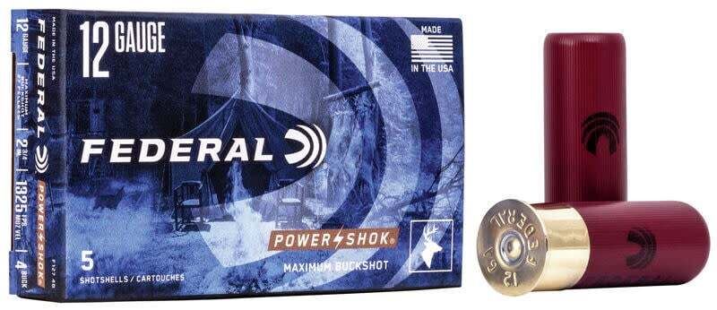 Federal Power Shok 12 Gauge 2 3/4" 4 Buck (5 Rounds) Sku F1274B Federal® Power•Shok® sabot slugs offer affordable sabot and rifled slug options in a variety of gauges. These loads provide accuracy and power at an affordable price.
