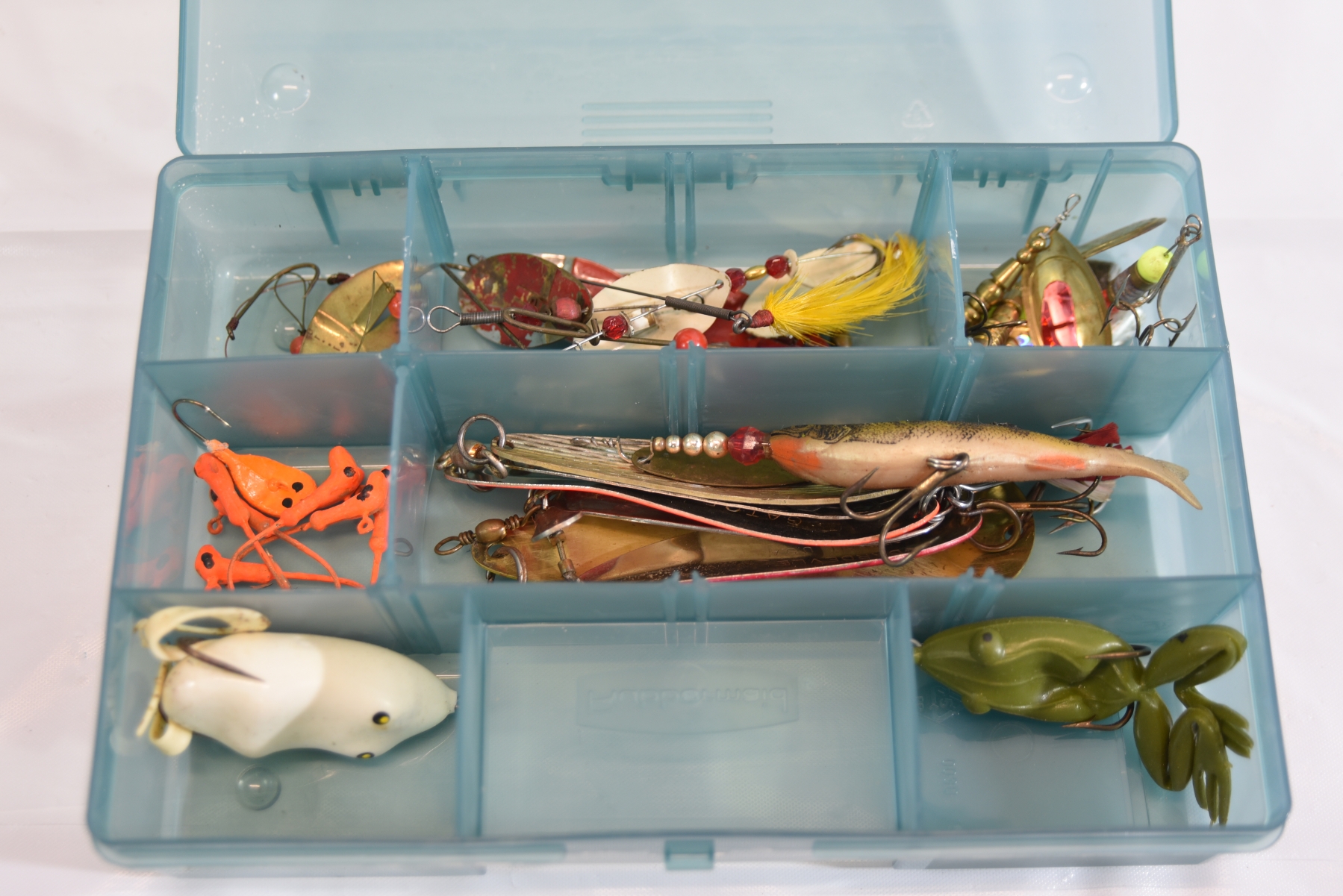 Fishing Lures Lot w/ Frogs Spinner Rigs Spoons Bass Tackle Box