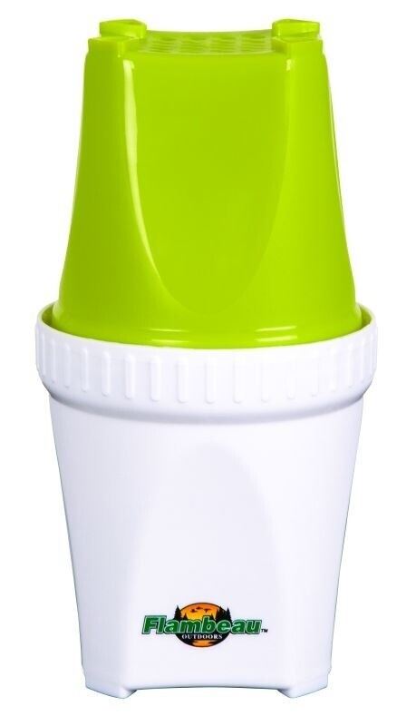 Flambeau Leech Vault Sku 6056BC Vented top lid fits in bottom to serve as bait strainer Twist lock Carabineer clip holder