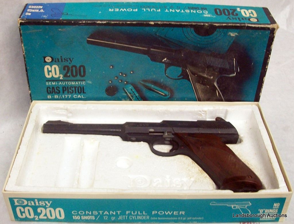 DAISY CO2 200 SEMI AUTO BB GAS PISTOL. .177 CAL. IN ORIGINAL BOX, IN FAIR CONDITION