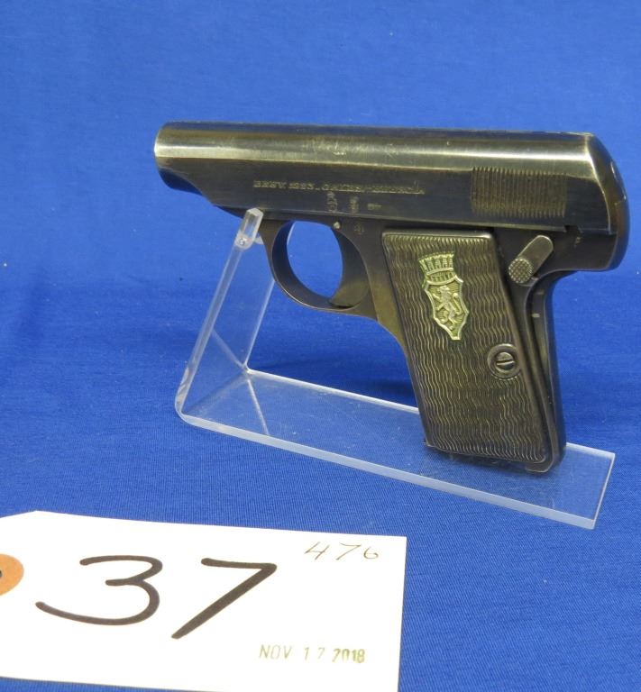 Prohibited, semi auto, 6.35mm, 58mm barrel, SN 132215. Grips good, bluing is grey with scratches, bore has deep pits.