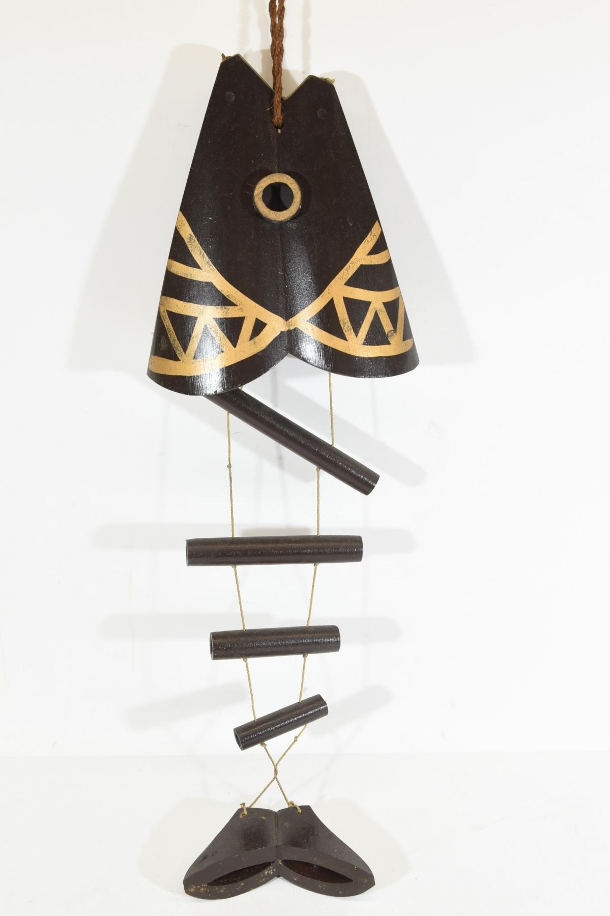 1) Flying goose 27" x 18". 2) Wind chime fish.