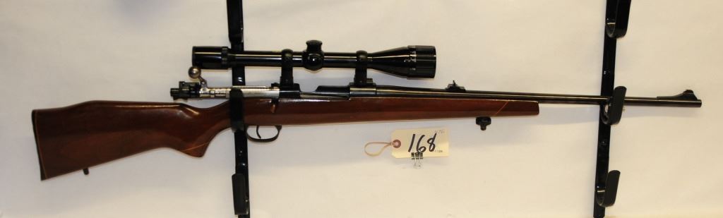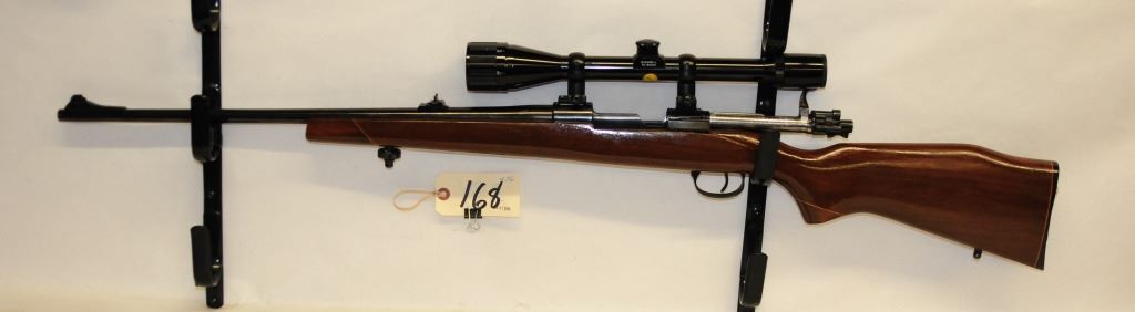 Non-restricted, mauser bolt action, 243 win., 22" barrel, SN 1116, wood is in good condition, bluing is good, bore is fair, has a Bushnell banner 10 x 40 scope