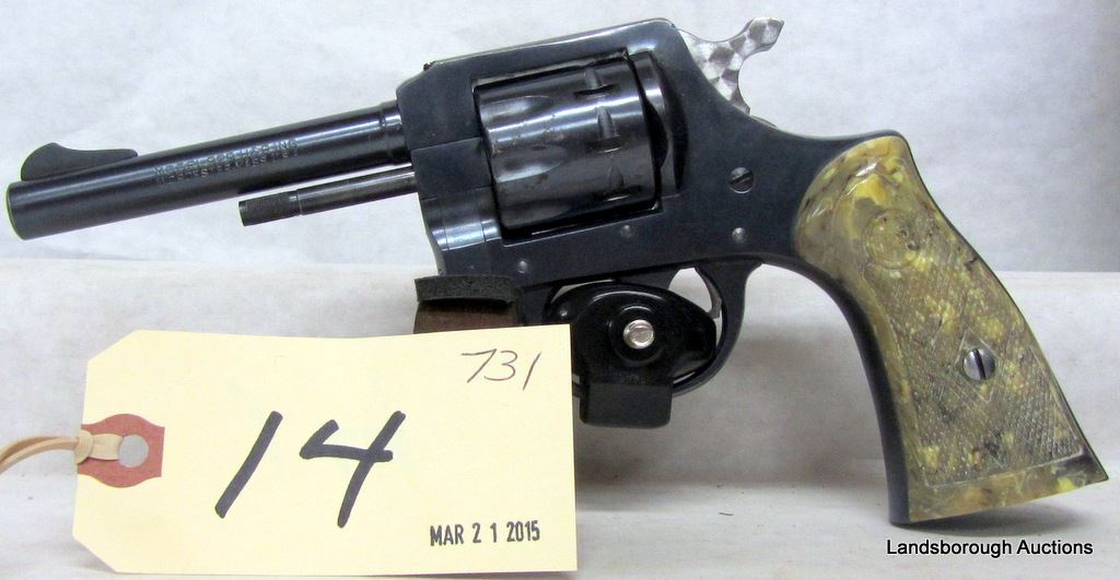 PROHIBITED, REVOLVER, 22LR, 102MM BARREL, SN S20006. GRIPS VERY GOOD, BLUING HAS SOME PITTING ON CYLINDER, BORE EXCELLENT. COMES WITH DISPLAY CASE.