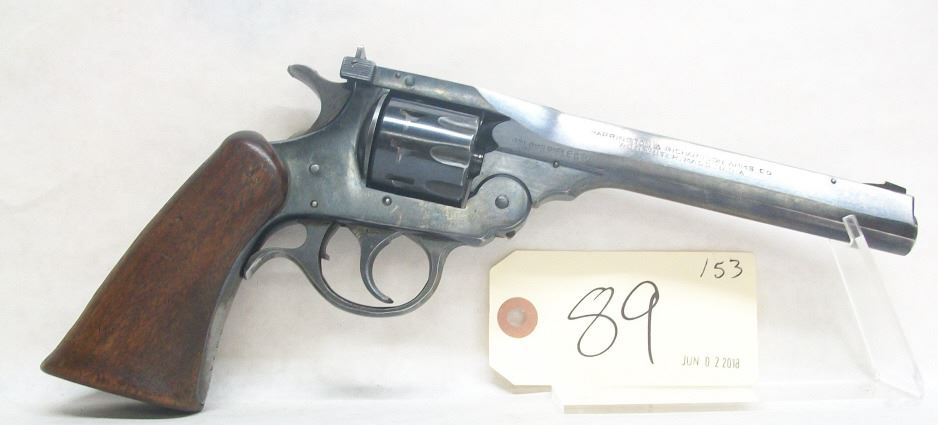 RESTRICTED, DOUBLE ACTION, 22 LR, 6" BARREL, SN# 80349, WOODEN PISTOL GRIP SHOWING WEAR, BLUING IS FAIR TO GOOD, BORE IS VERY GOOD, 9 SHOT CYLINDER