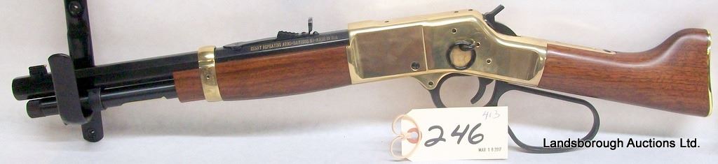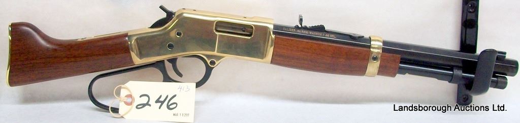 NON-RESTRICTED, LEVER ACTION, 44 REM MAG, 13" BARREL, SN BBML02547. THERE ARE SOME MARKS FROM THE SADDLE RING OTHERWISE EXCELLENT CONDITION. ORIGINAL BOX.