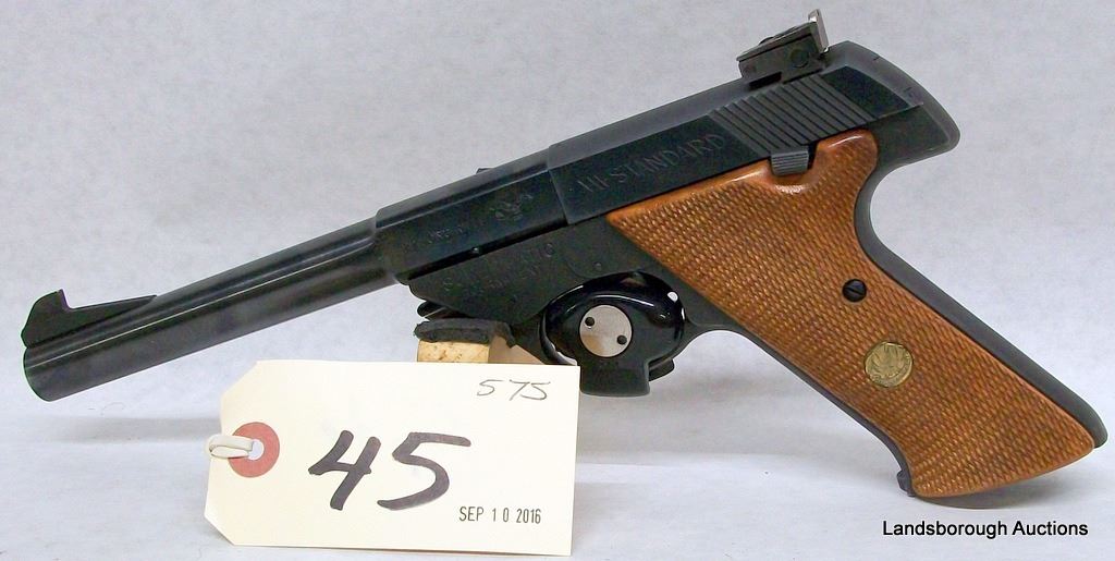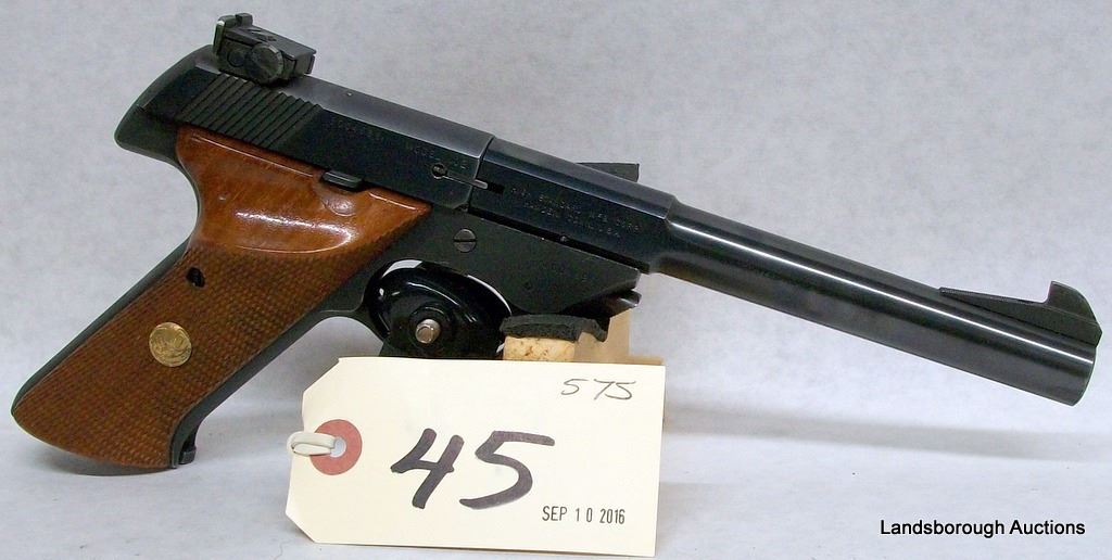 RESTRICTED, SEMI AUTO, 22LR, 171MM BARREL, SN 1004696. WOOD GRIPS VERY GOOD, BLUING HAS SOME SCRATCHES, BORE EXCELLENT.
