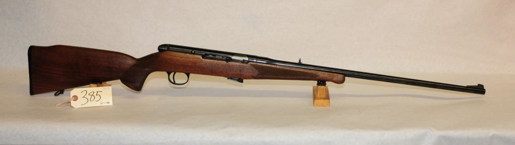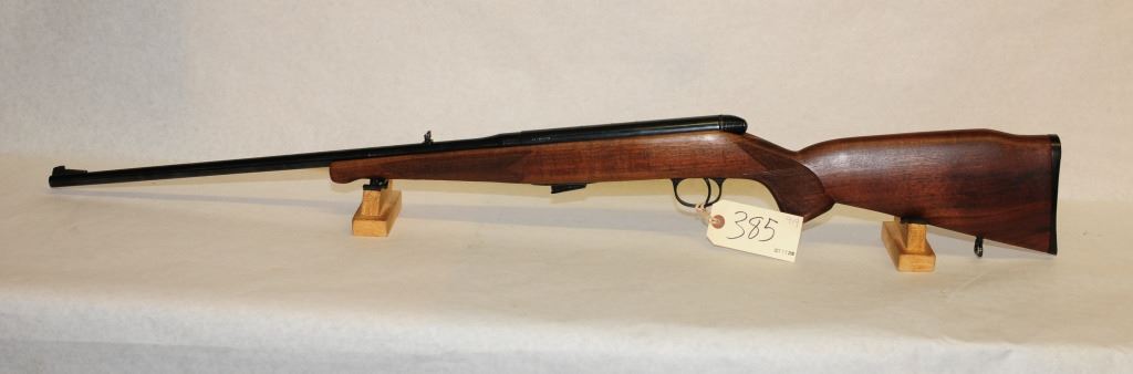 Non-restricted, bolt action, 22 magnum, 22" barrel, SN A7496673, wood good and has been reshaped to schnabel, bluing is good, bore is very good, breech won't lock open and gun is drilled for scope mount