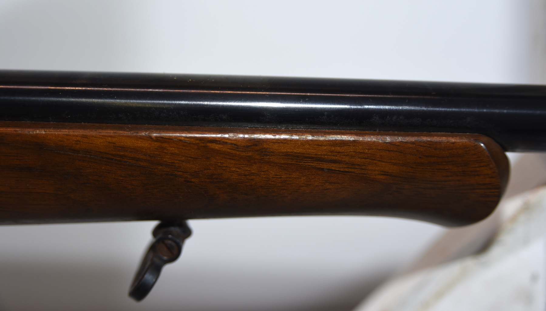 Wood stock shows scratches, scuffs, few light finish wear spots in places; condition is very good.