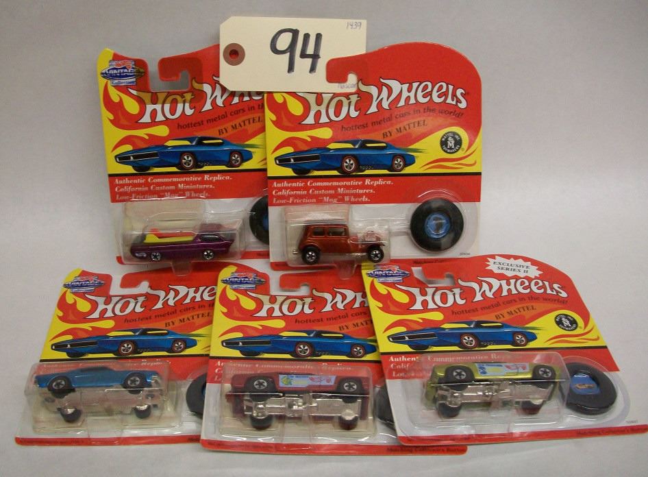 Hot Wheels Vintage Series A (1993) 1:64 size, in packages Set of 5 Mustang (10496) Blue, with Collector's Button Mongoose (10783) Red, with Collector's Button