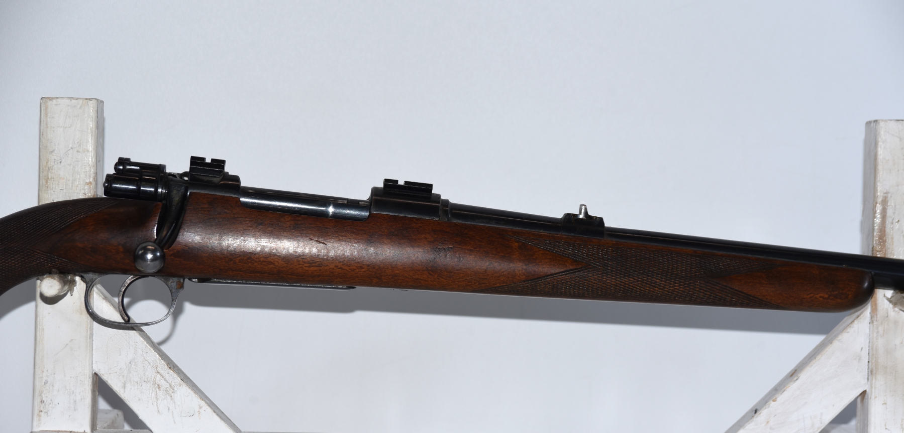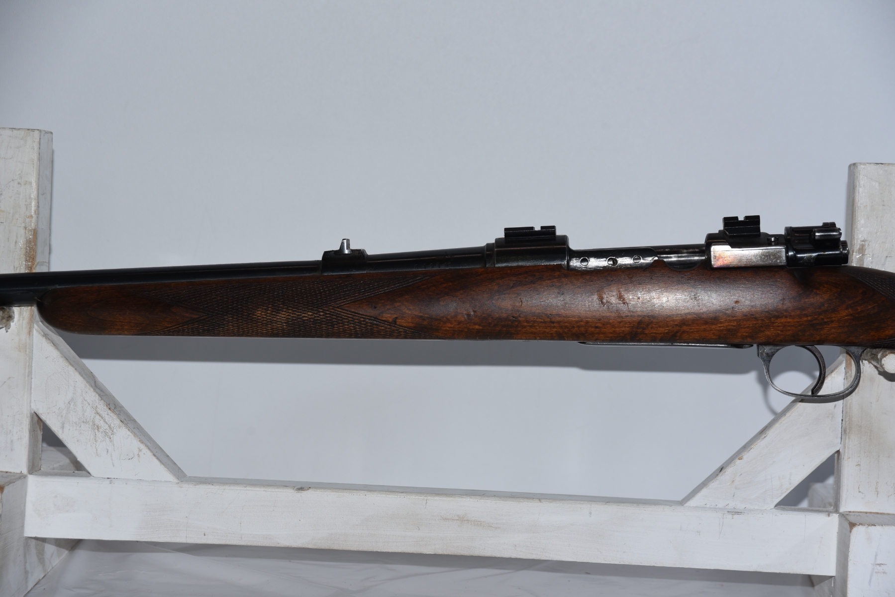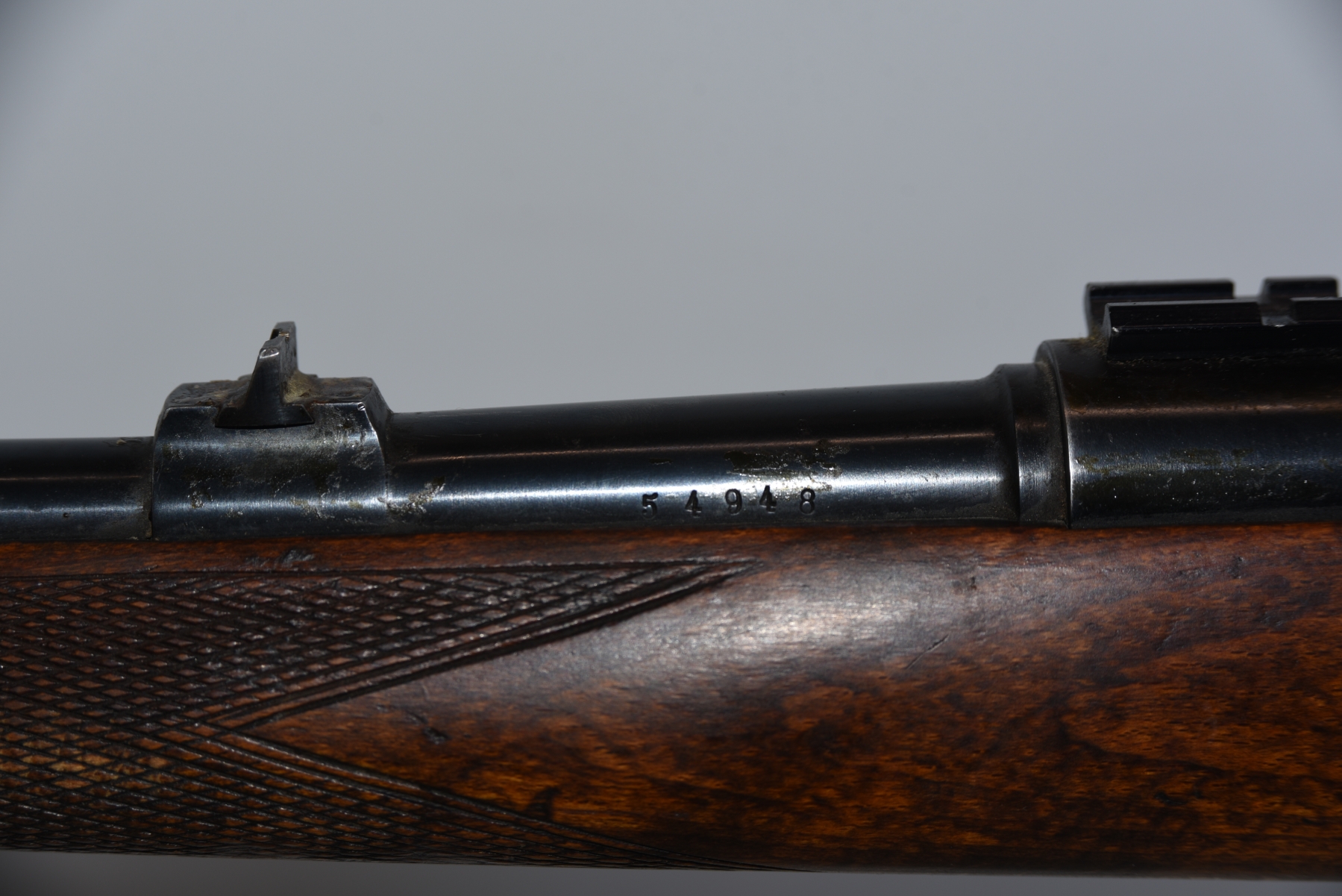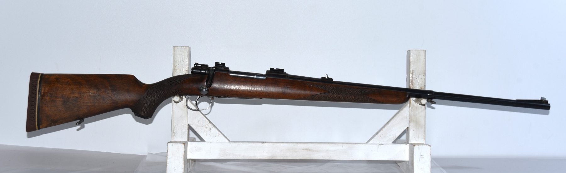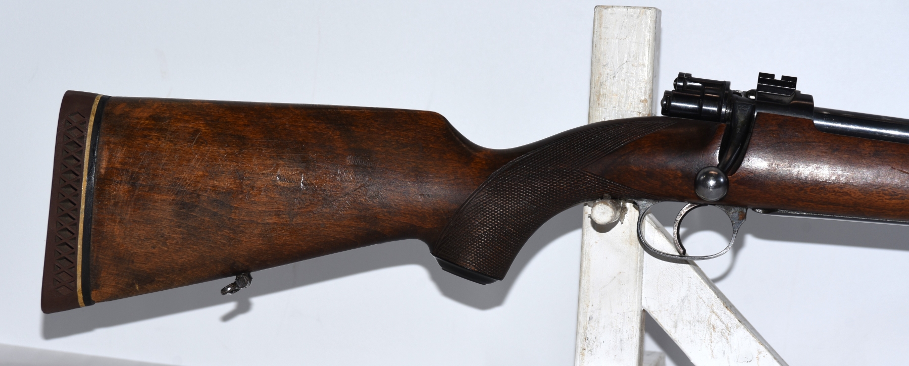 Wood stock shows light scratches and scuffs, few dents; condition is good.