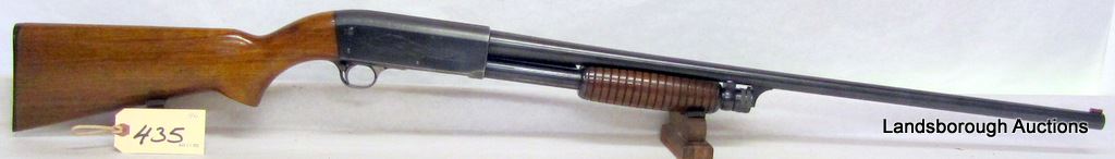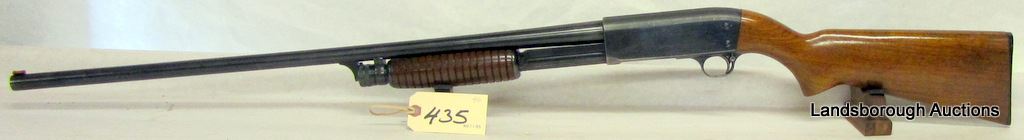 NON-RESTRICTED, PUMP ACTION, 16GA X 2 3/4", 28" BARREL WITH FIXED FULL CHOKE, SN 5768734. WOOD SOLID WITH VERY FEW MARKS, BLUING IS GREY WITH SOME MARKS ON BARREL, BORE VERY GOOD.