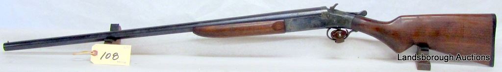 NON-RESTRICTED, SINGLE SHOT, 12GA, 30" BARREL WITH FIXED FULL CHOKE, SN 28846. WOOD HAS CRACKED FOREARM, BLUING GREY AND LIGHTLY PITTED, RECEIVER HAS CASE HARDENING COLOR, BORE VERY GOOD.