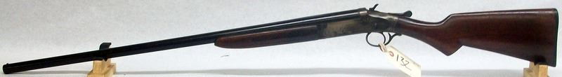 NON RESTRICTED BREAK ACTION 12GA, FULL FIXED CHOKE, 762MM BARREL, SN 23357. WOOD IS SCRATCHED, CRACK IN WRIST, BLUING IS GOOD, BORE HAS A RING MARK FROM A MISFIRE 4" DOWN.