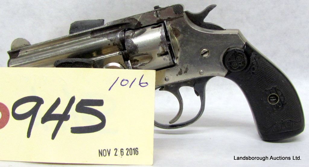 PROHIBITED, REVOLVER, 32 S&W, 76MM BARREL, SN A45014. GRIPS HAVE A COUPLE MARKS, NICKEL PLATING MISSING AROUND CYLINDER, BORE PITTED.