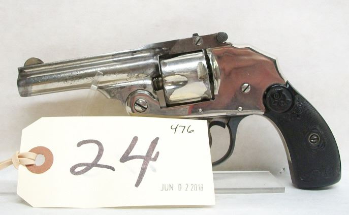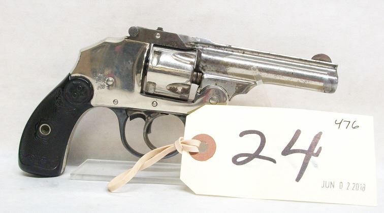 PROHIBITED, REVOLVER, 32 S&W, 76MM BARREL, SN 95108. GRIPS VERY GOOD, NICKEL PLATING PITTED, BORE PITTED.