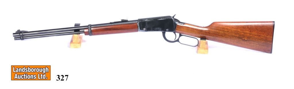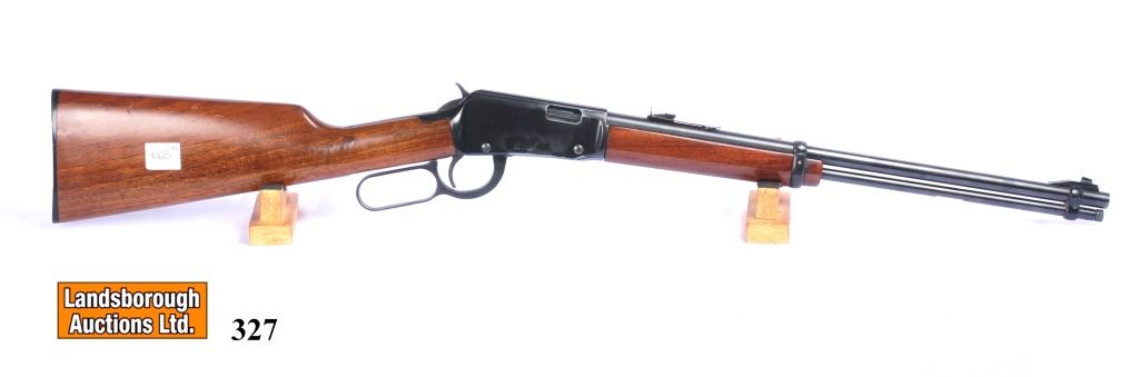 Non-restricted, lever action, 22 lr, 18 1/2" barrel, SN 72015686, wood has a few marks in the butt stock and one small crack in the fore end, bluing is good on the barrel but has grey areas on the receiver, bore is very good