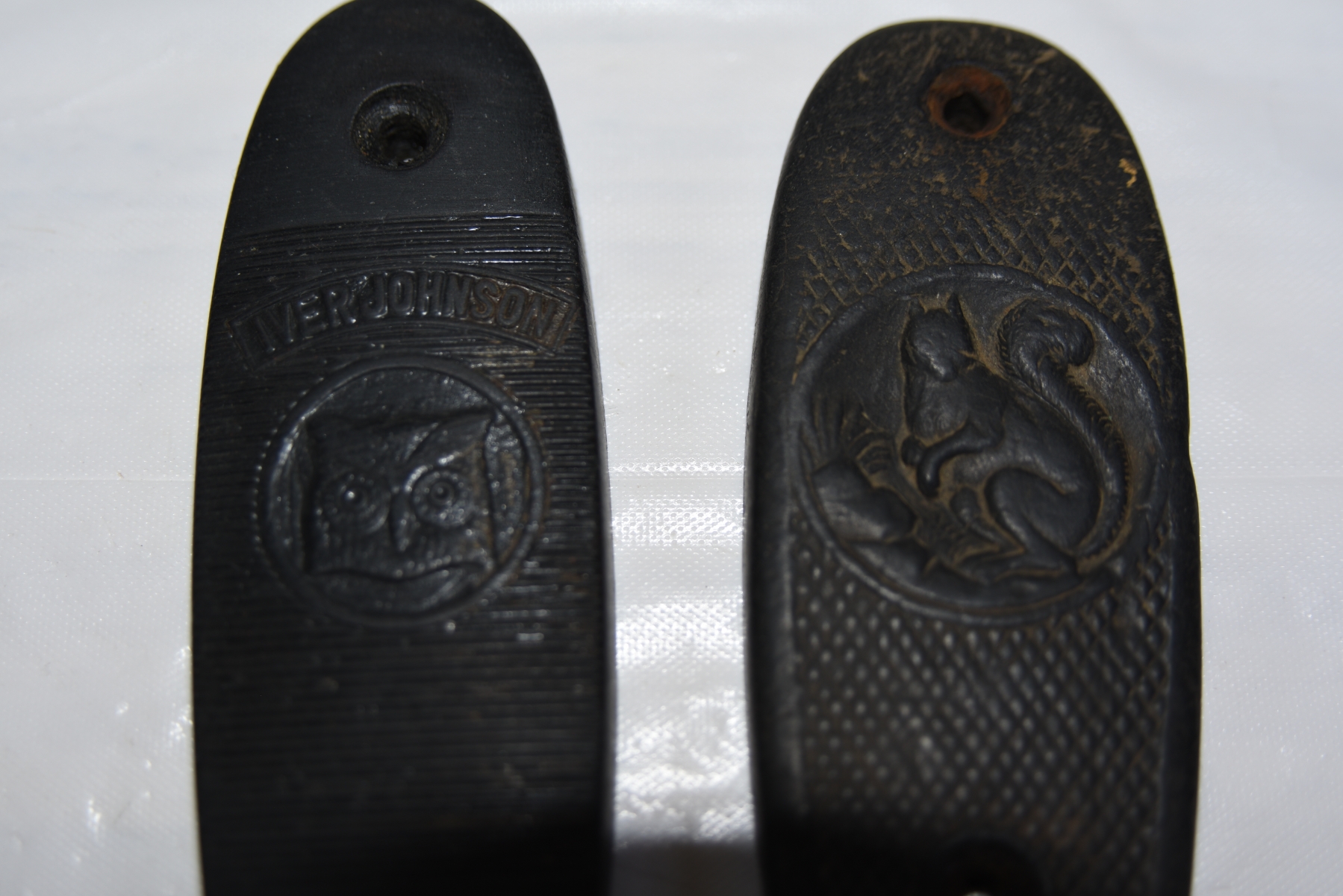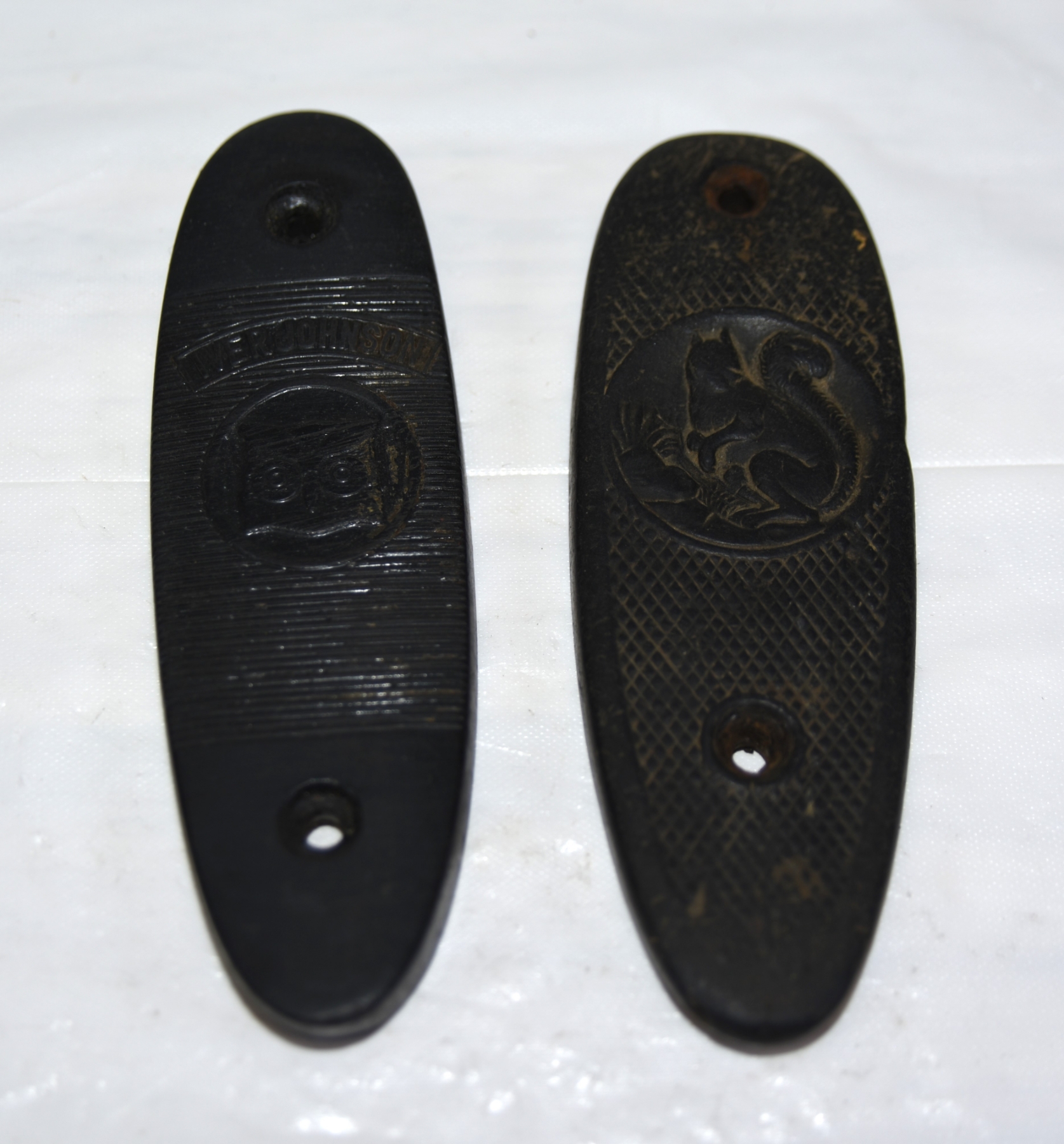 Iver Johnson Owl butt Plate & V.G., Squirrel Emblem SxS Shotgun Butt Plate