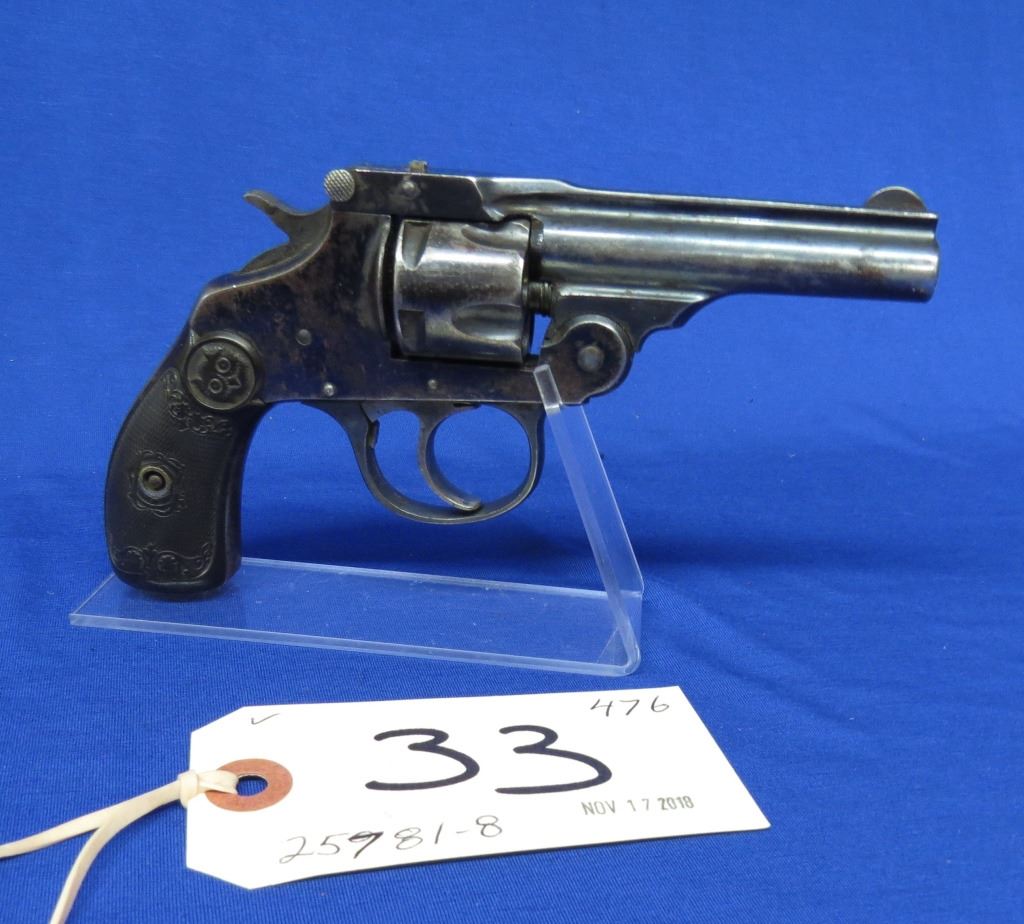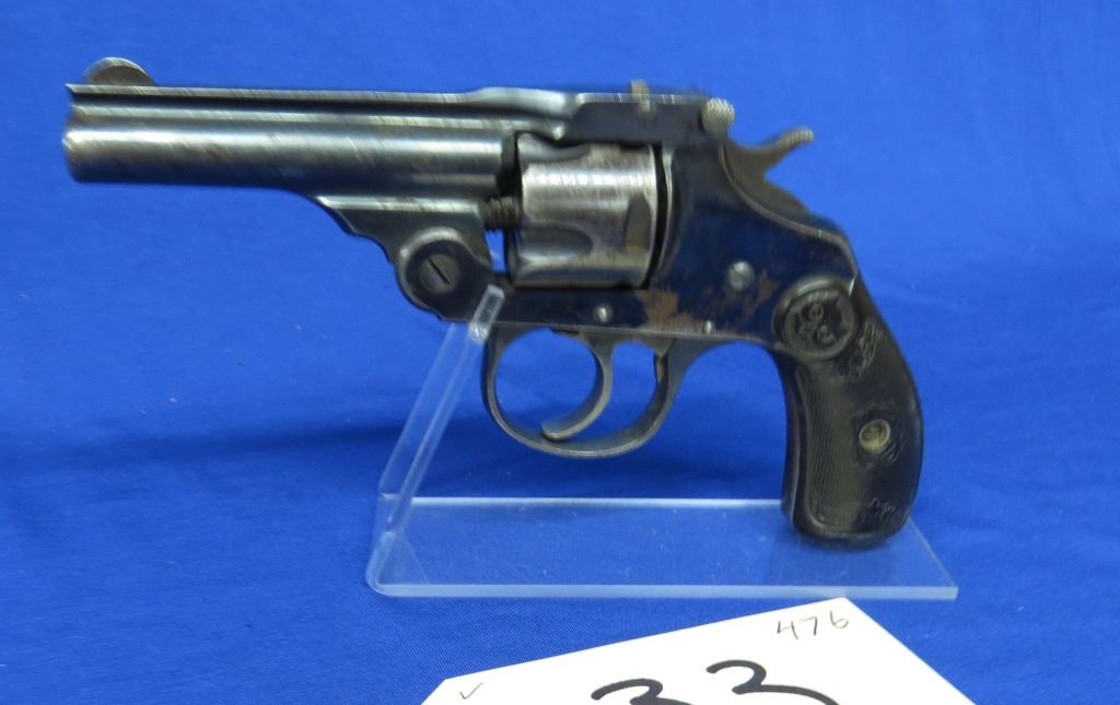 Prohibited, revolver, 32 S&W, 76mm barrel, SN F75612. Grips have some marks, bluing worn off and pitted, bore has deep pitting.