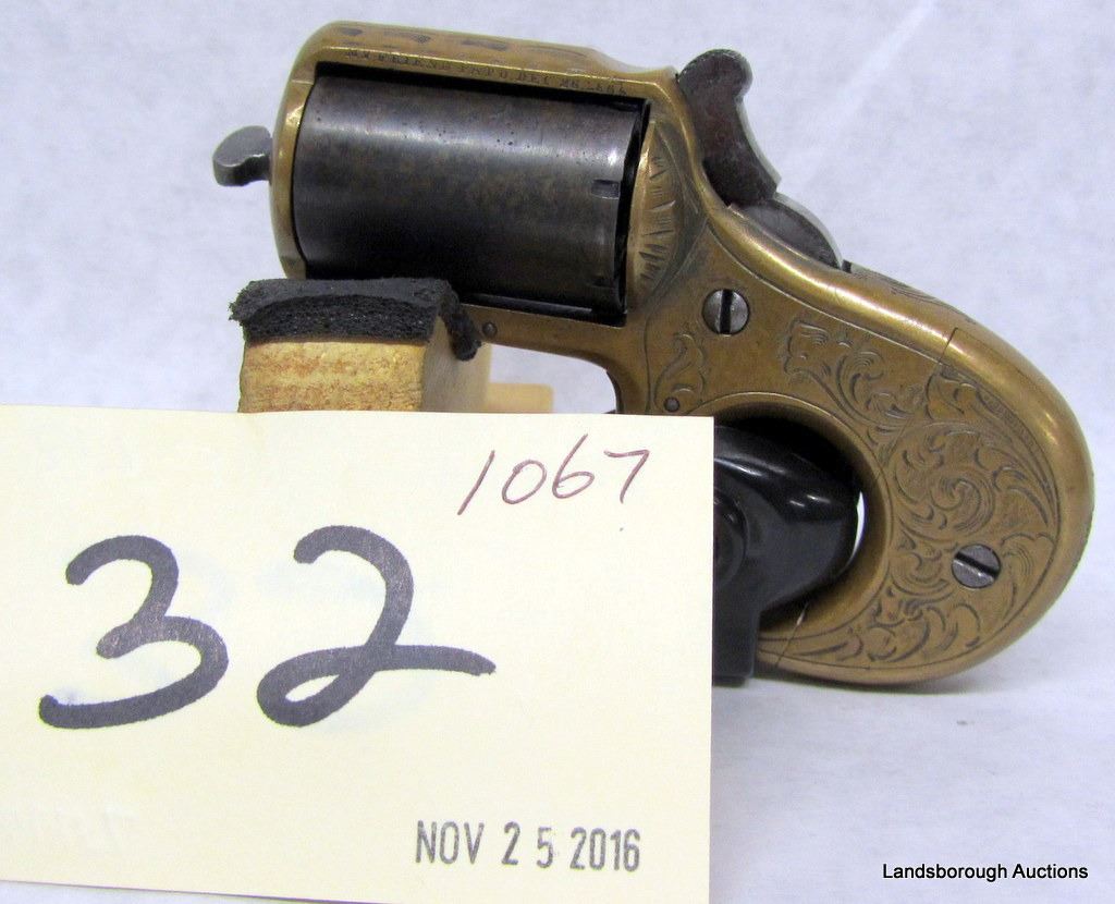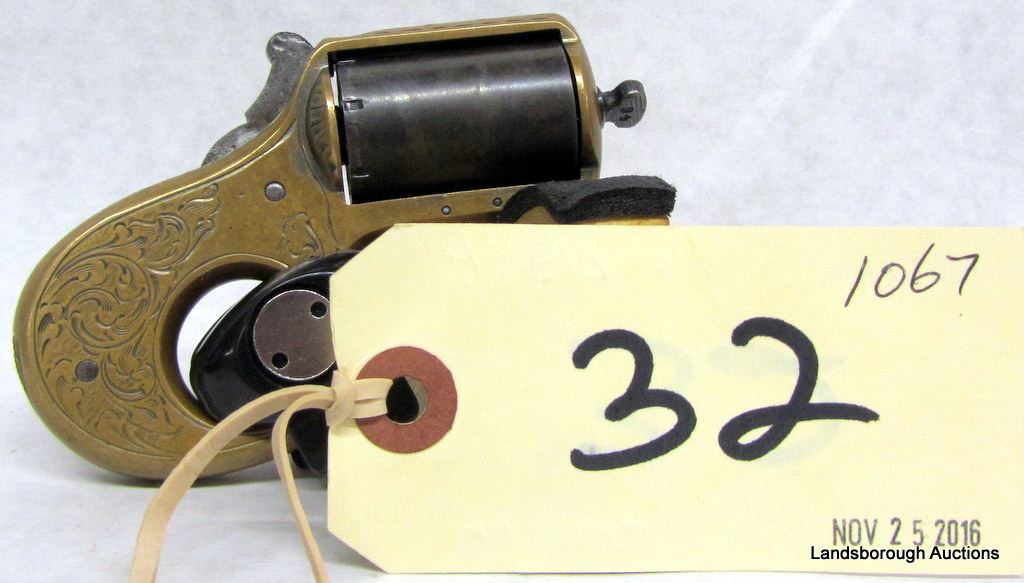 PROHIBITED, REVOLVER, 22LR, 38MM BARREL, SN 10194. BRASS FRAME IS TARNISHED, BLUING IS GREY, BORES HAVE PITTING.
