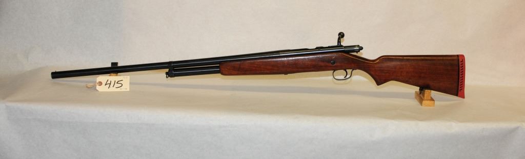 Non-restricted, bolt action, 12Ga x 2 3/4", 28" barrel with fixed full choke, SN none. Wood has numerous scratches, bluing has some light pitting, bore very good.