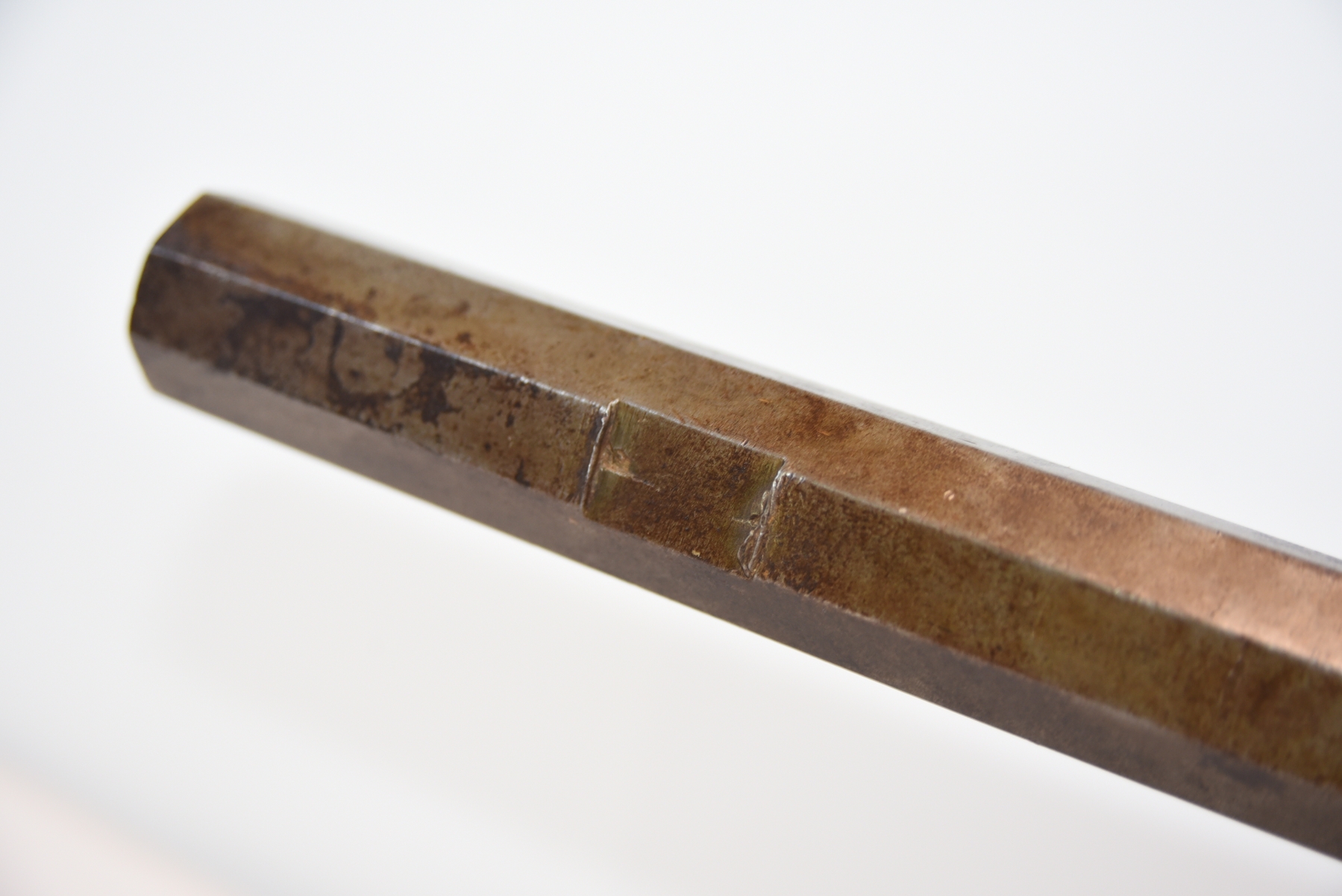 Metal shows some missing parts, there is patina present, push rod is missing, light rust spots, scratches, scuffs; condition is fair for age.