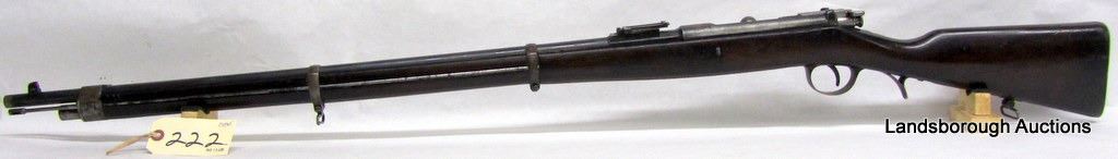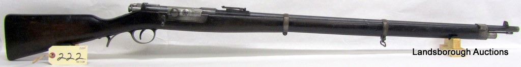 NON-RESTRICTED, BOLT ACTION, 8 X 60R KROPATSCHEK, 32" BARREL, SN E915. WOOD HAS NUMEROUS DENTS, SCRATCHES AND MARKS, BLUING TURNING BROWN, BORE GOOD.