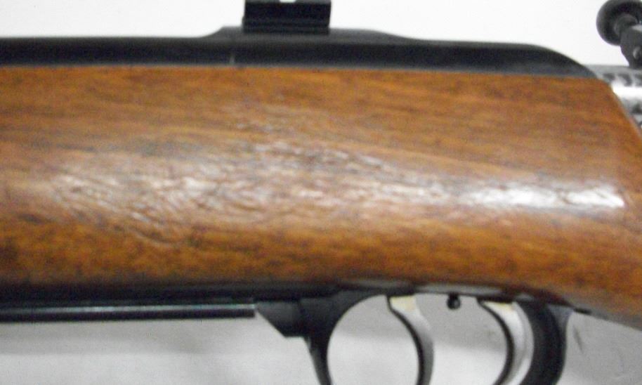 Non-restricted, bolt action, .222 cal., 24" barrel, SN 367, wood has some scratches, bluing is good, bore is excellent, has scope rails but no rear sight