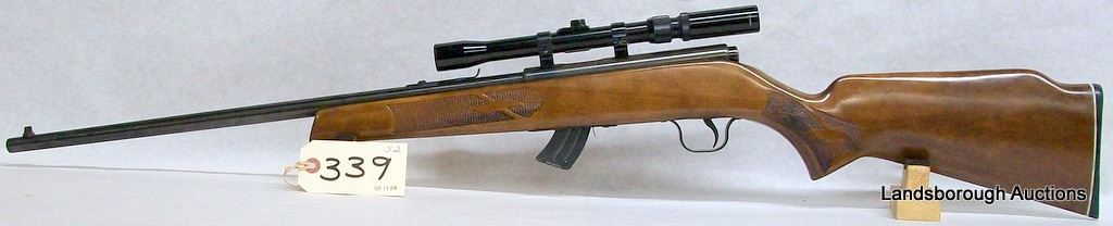 NON-RESTRICTED, BOLT ACTION, 22LR, 21" BARREL, SN 101225. WOOD HAS A FEW MARKS, BLUING HAS SOME RUSTING AT SCOPE MOUNT, BORE EXCELLENT. COMES WITH BUSHNELL 3-7 X 20 SCOPE.