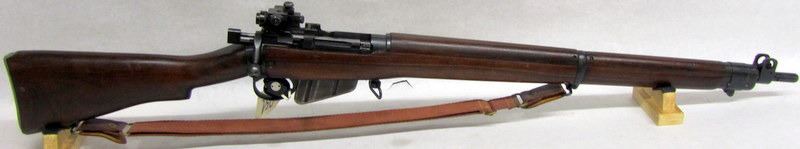 NON-RESTRICTED, BOLT-ACTION, 303 BRITISH, 26 INCH BARREL, SN 35L2149. BORE IS SHINY, WITH DARK LANDS. BLUEING IS VERY GOOD, WITH LIGHT WEAR, STOCK IS GOOD, WITH SOME MINOR DENTS. MADE IN LONGBRANCH. INCLUDES REAR PEEP SIGHT