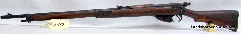 NON-RESTRICTED, BOLT ACTION, 303 BRITISH, 30" BARREL, SN 3942. WOOD HAS NUMEROUS DENTS AND MARKS, BLUING TURNING BROWN, BORE DARK, RIFLING PROMINENT. MISSING CLEANING ROD.
