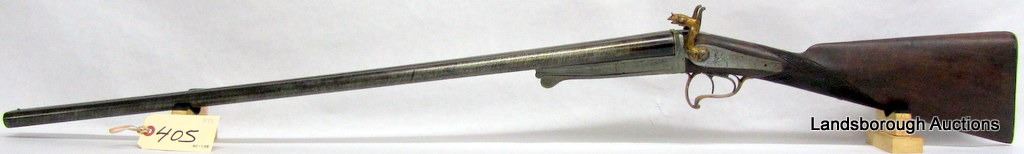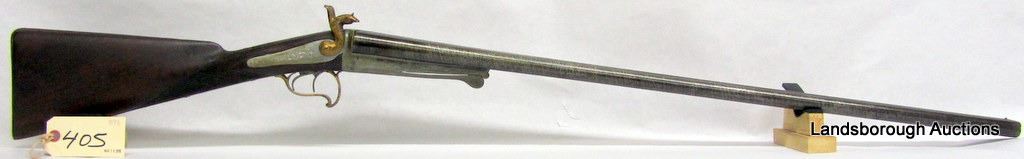 NON-RESTRICTED, MULTI BARREL, 12GA PIN FIRE, 32" DAMASCUS BARRELS, SN NONE. WOOD GOOD, BLUING ON BARREL IS BROWN, PAINTED ELSEWHERE, BORES PITTED. RIB HAS BEEN ENSCRIBED LEFAUCHEUX BA PINFIRE 1840.