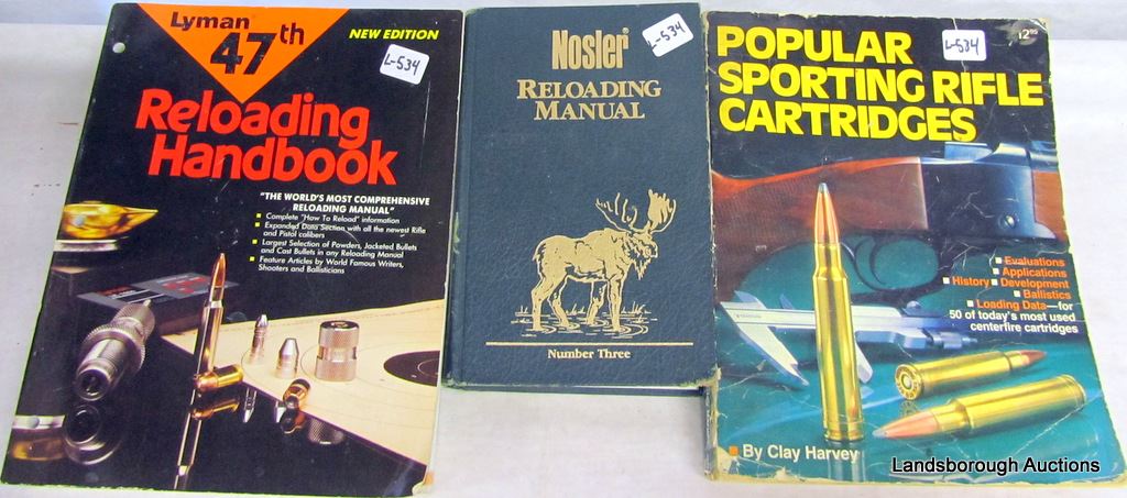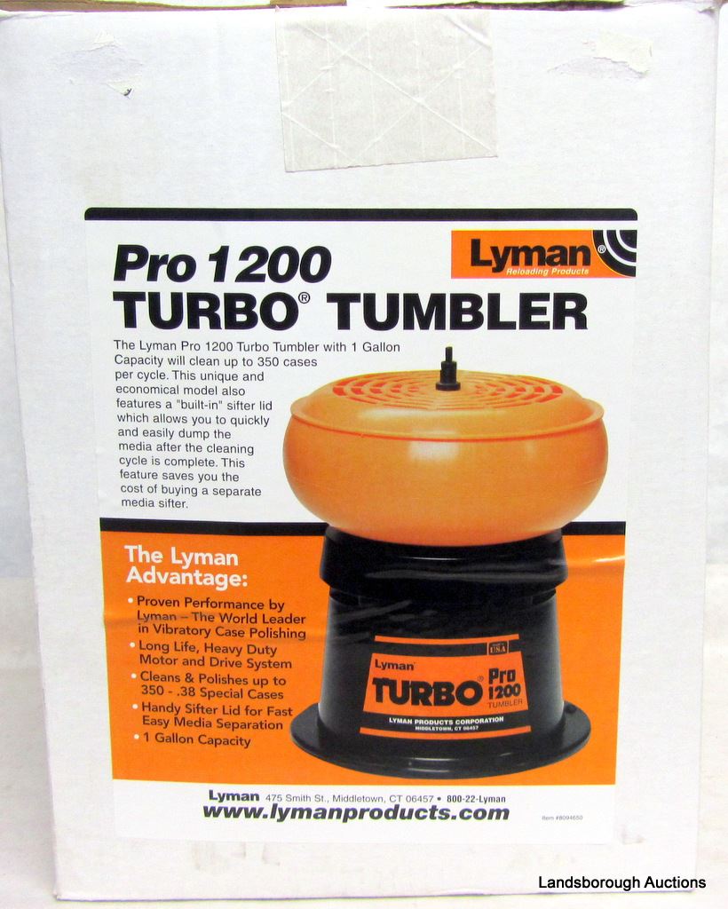 LYMAN PRO 1200 TURBO TUMBLER AND 3 MANUALS , NOSLER,LYMAN 47TH, AND POPULAR SPORTING RIFLE CARTRIDGES.