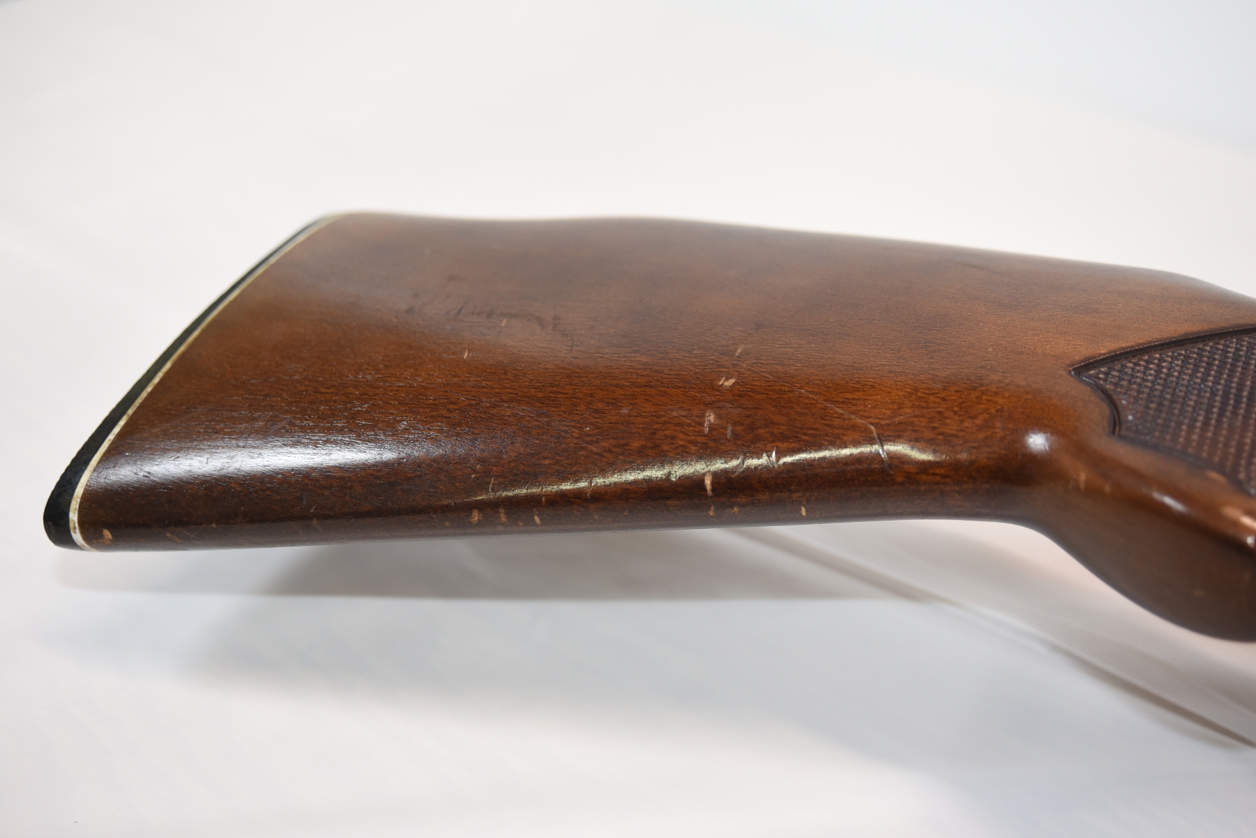 Wood stock shows finish wear scratches, scuffs, light dents; condition is good.