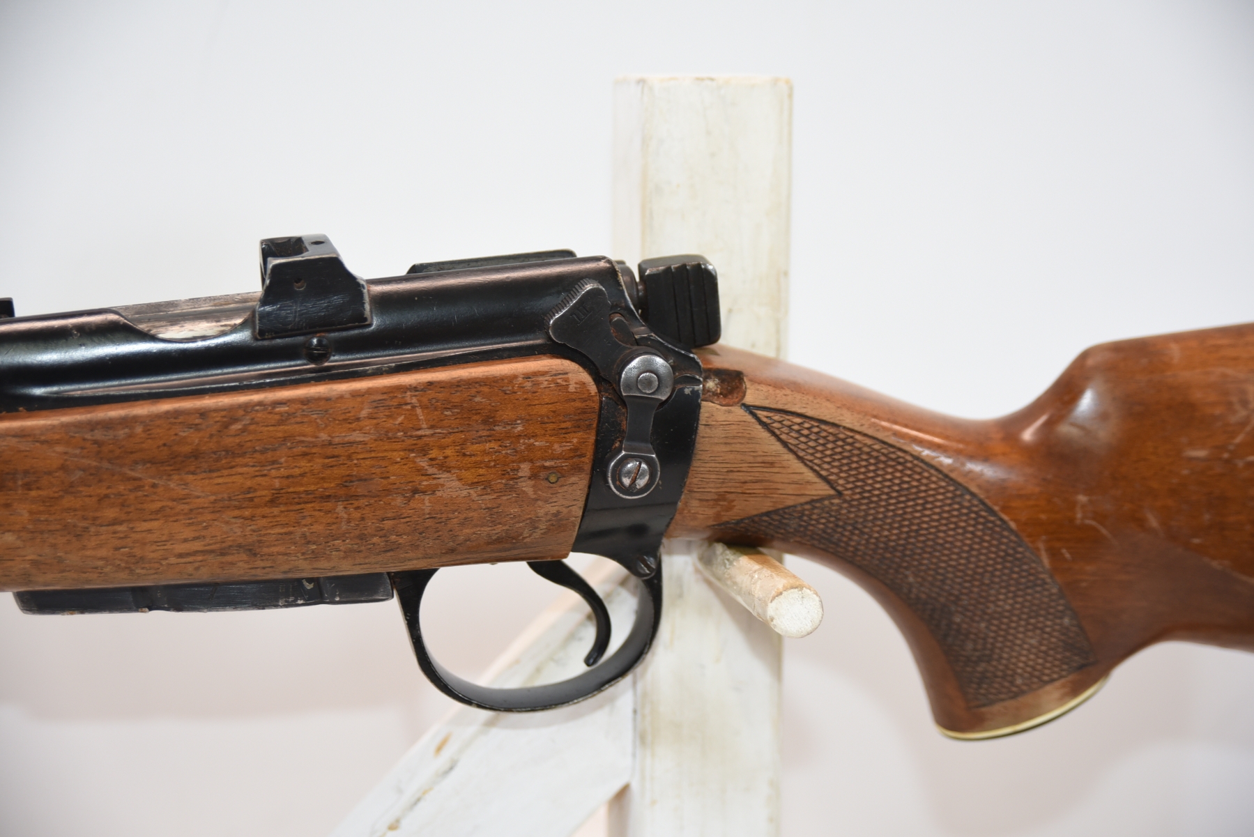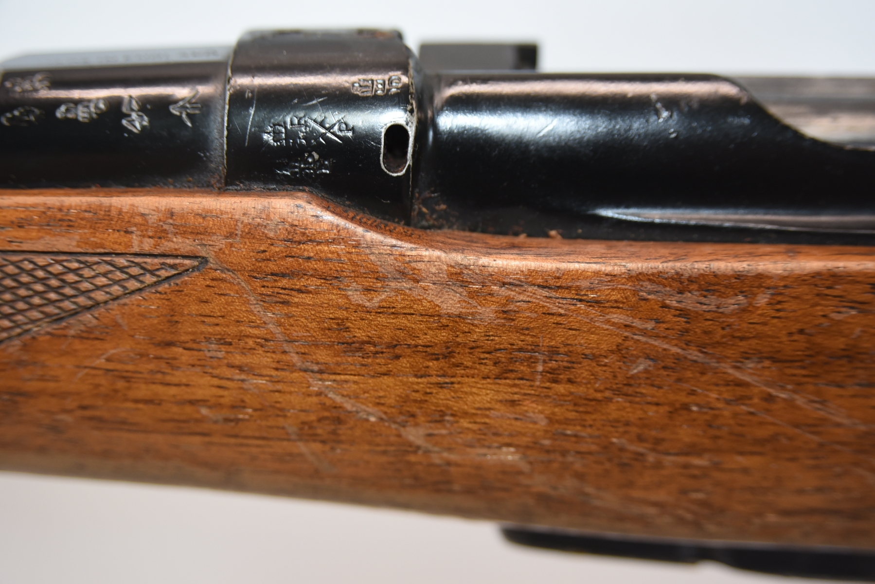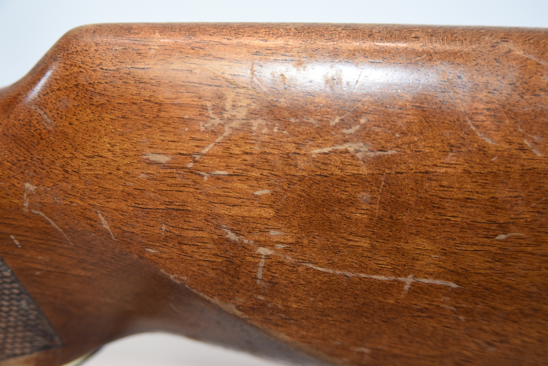 Wood stock shows scratches, scuffs, dents, finish wear; condition is fair.