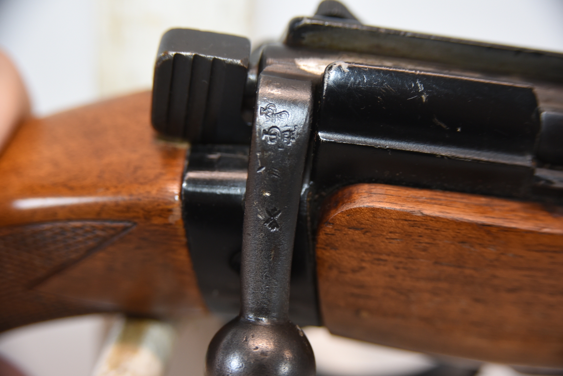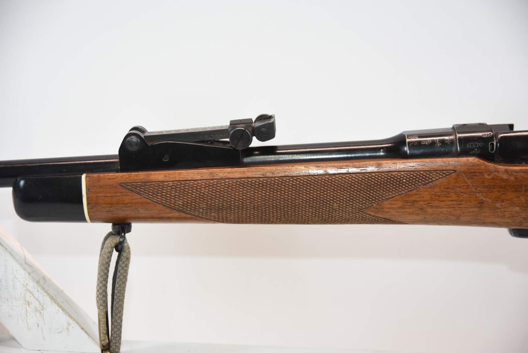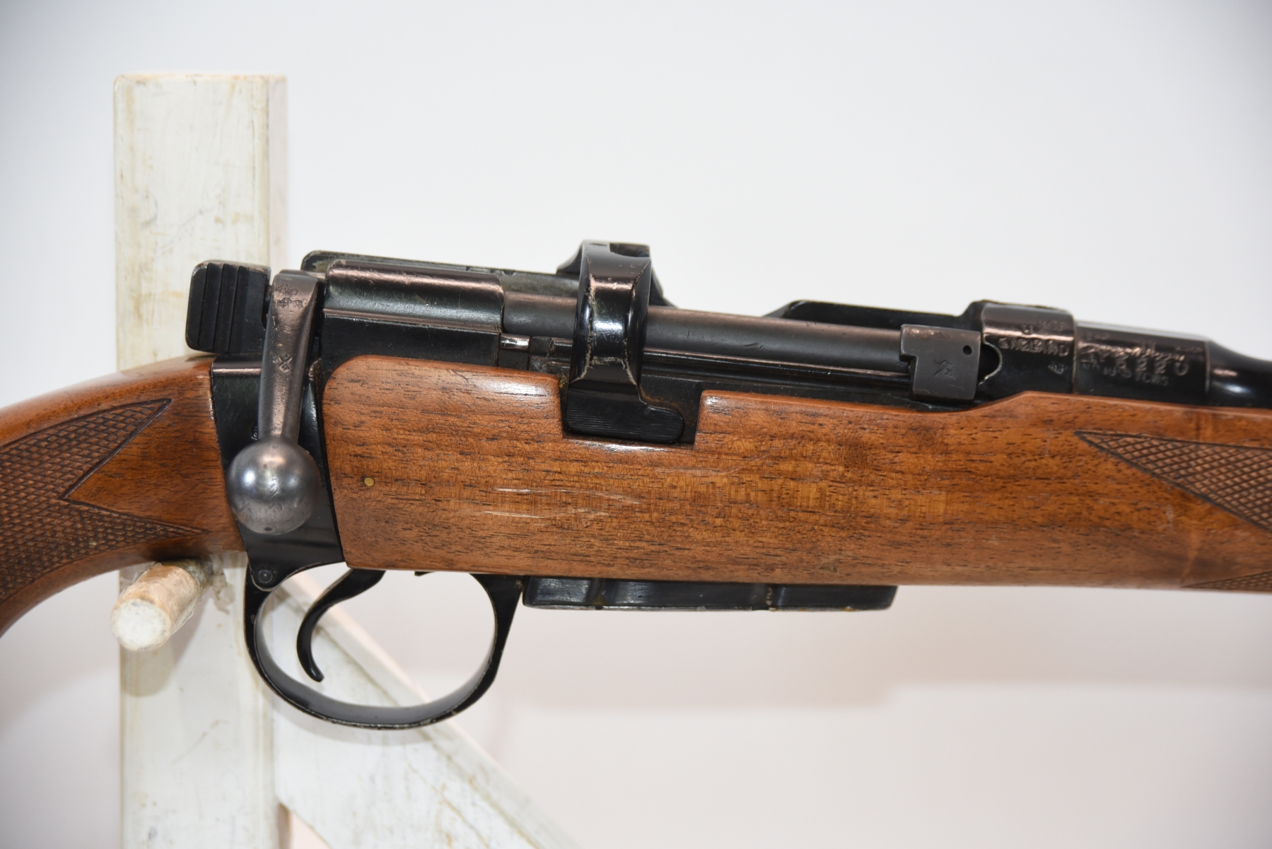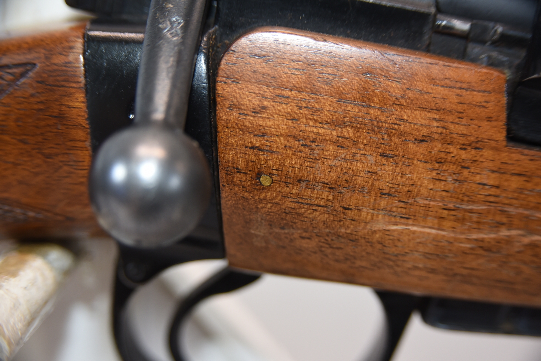 Wood stock shows scratches, scuffs, dents, finish wear; condition is fair.