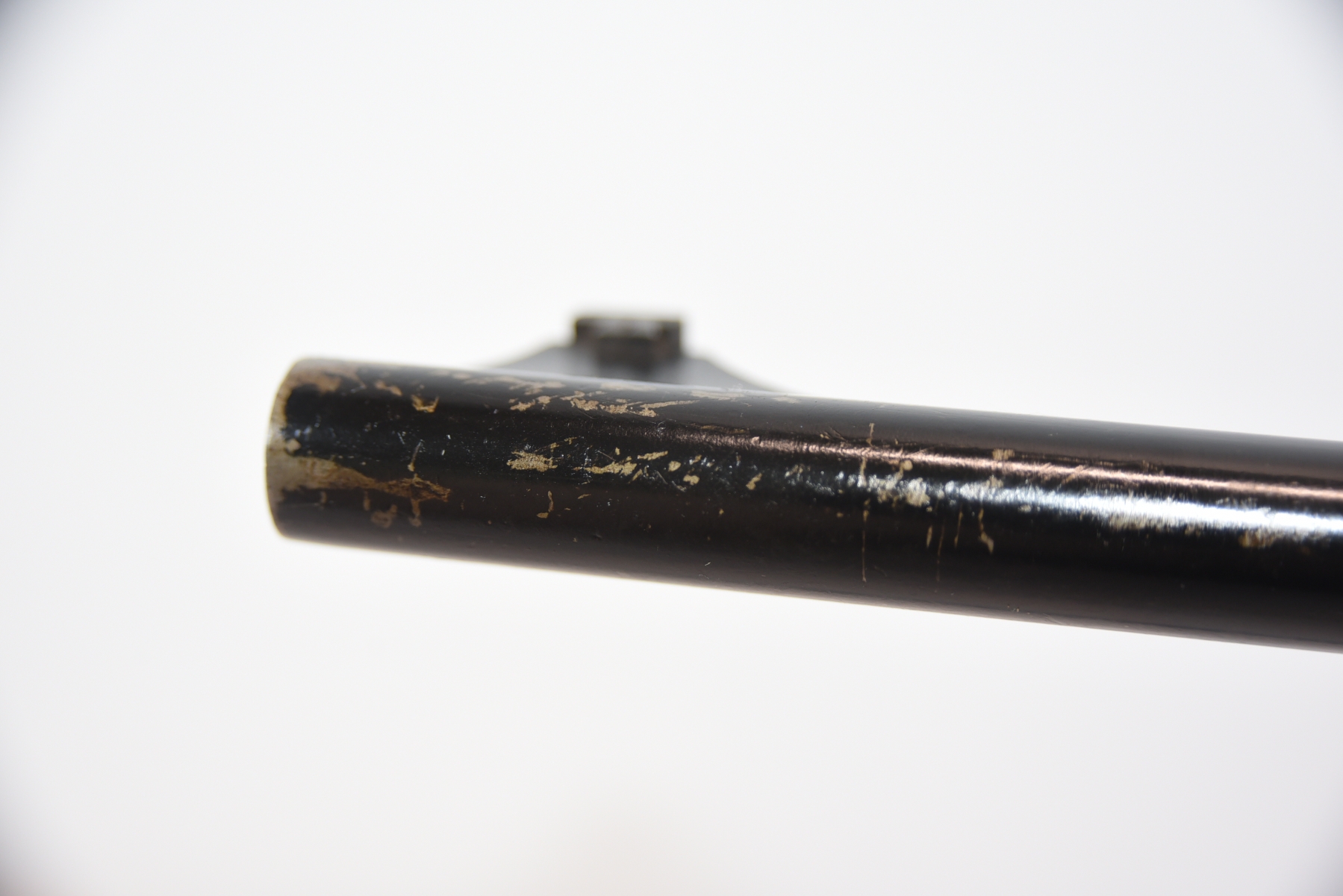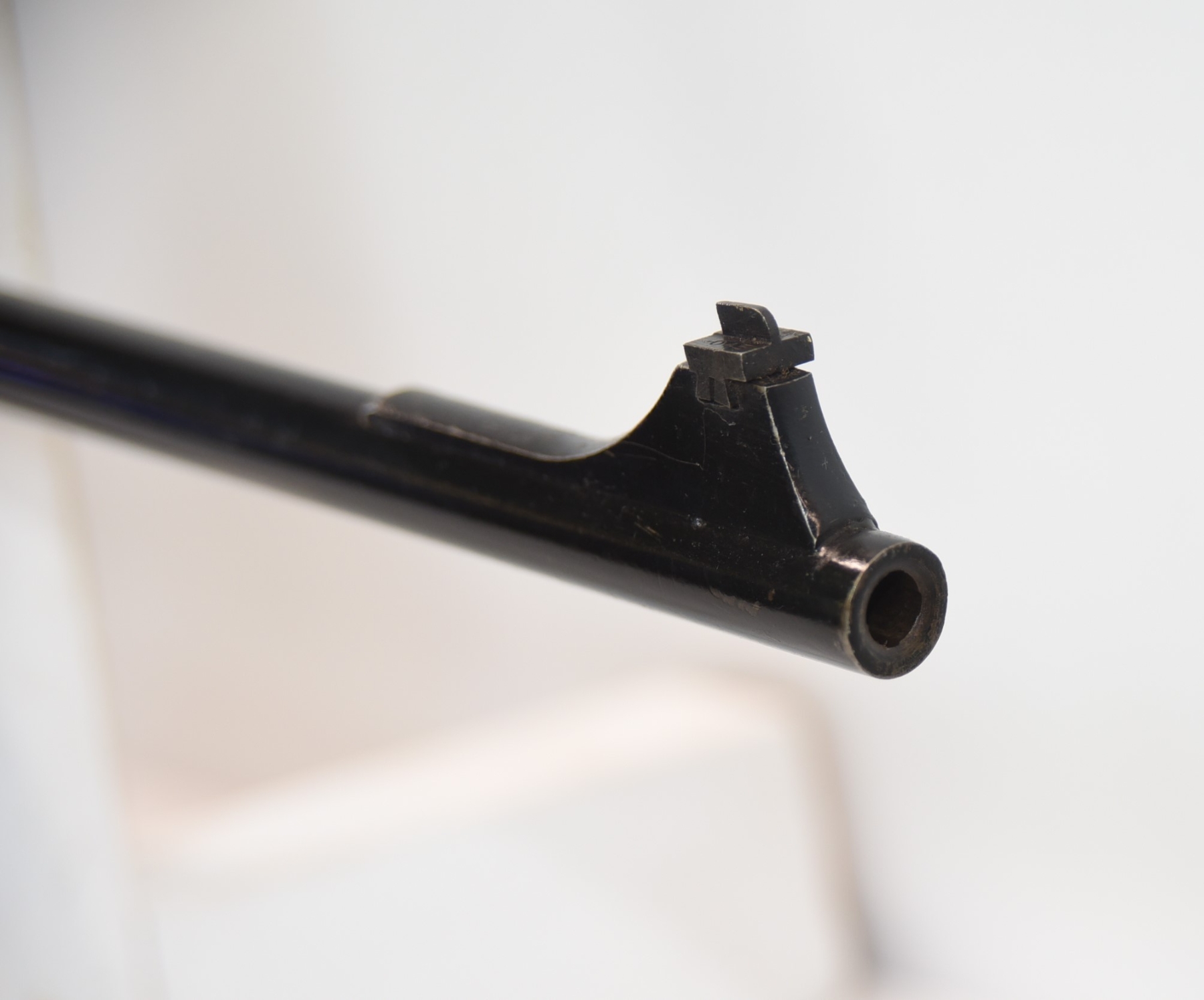 Bore is grey, lightly pitted, with rifling present; condition is less than fair.