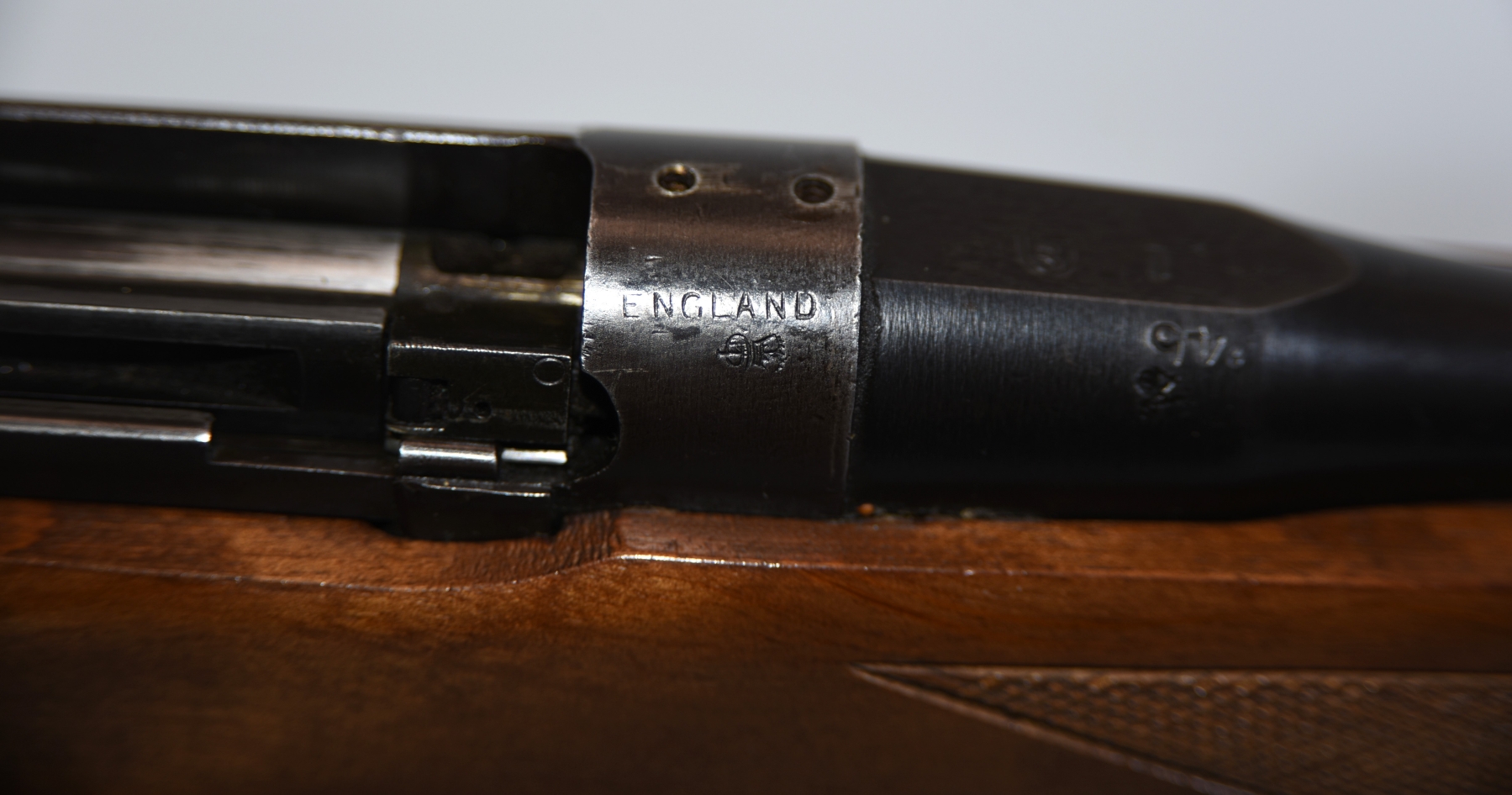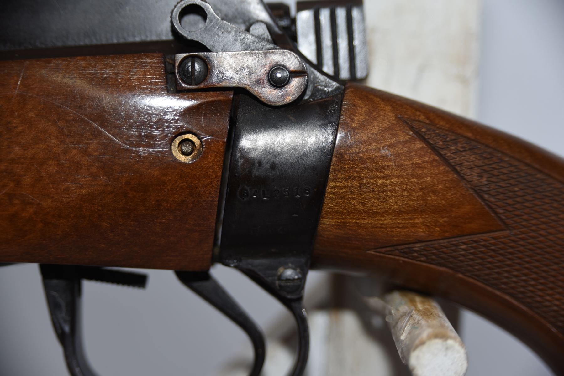 Wood stock shows few scratches, scuffs, dents; condition is very good.