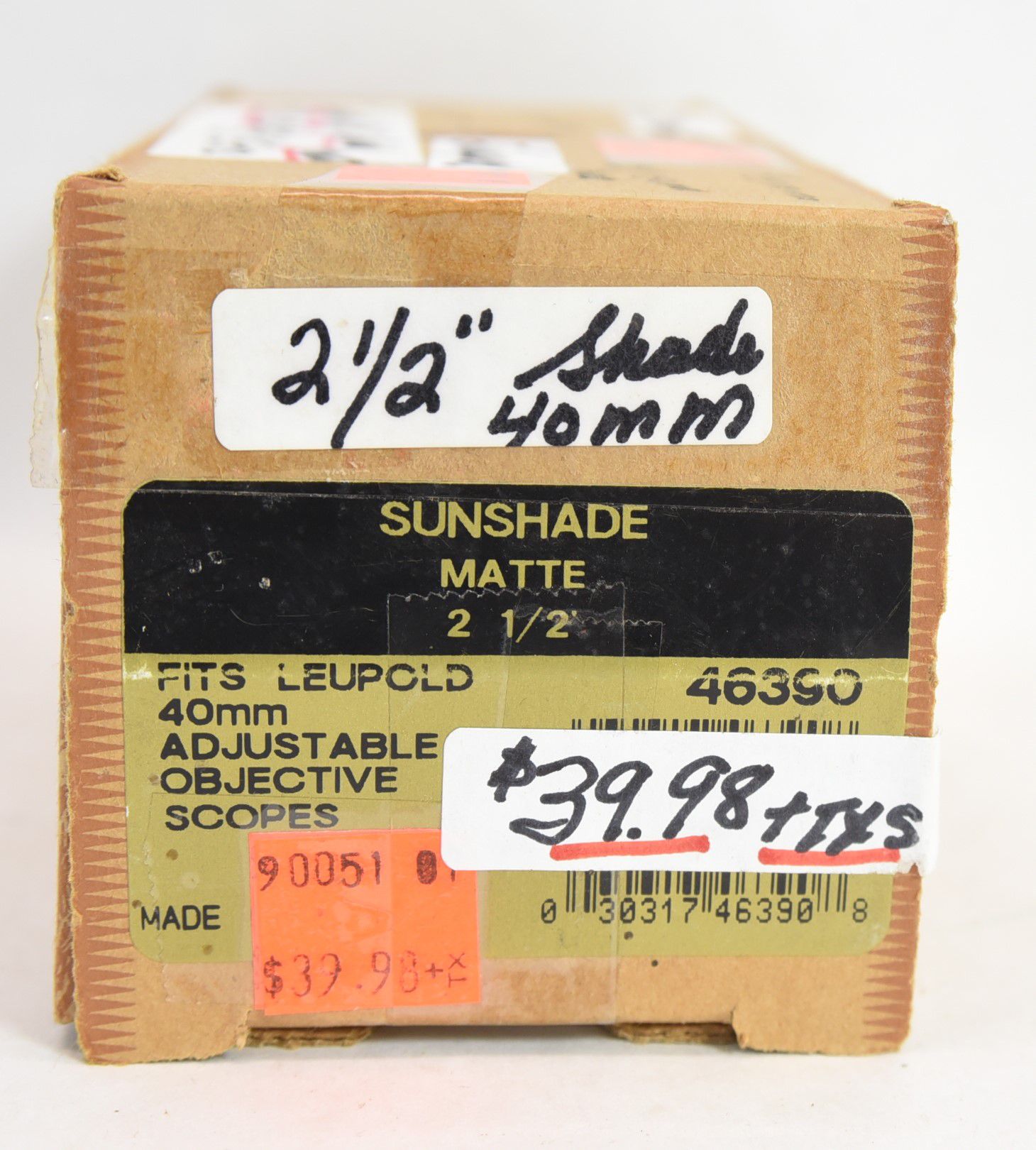 Leupold 2.5" matte sunshade fits 40mm adjustable objective scopes.