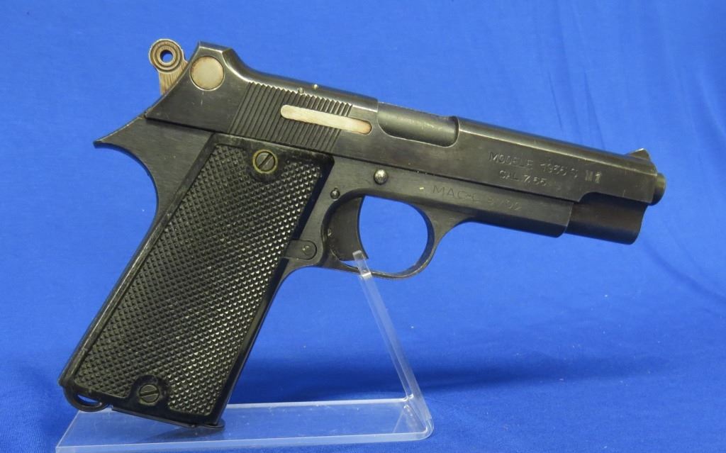 Restricted, semi auto, 7.65mm French Long, 106mm barrel, SN C8702. Plastic grips have some marks, bluing has some scratches and a pit mark, bore has light pitting.