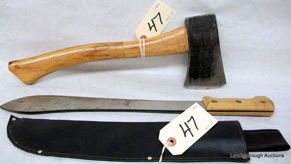 20 INCH MACHETE IN SHEATH AND 18" MASTERCRAFT 1.75LBS HATCHET.