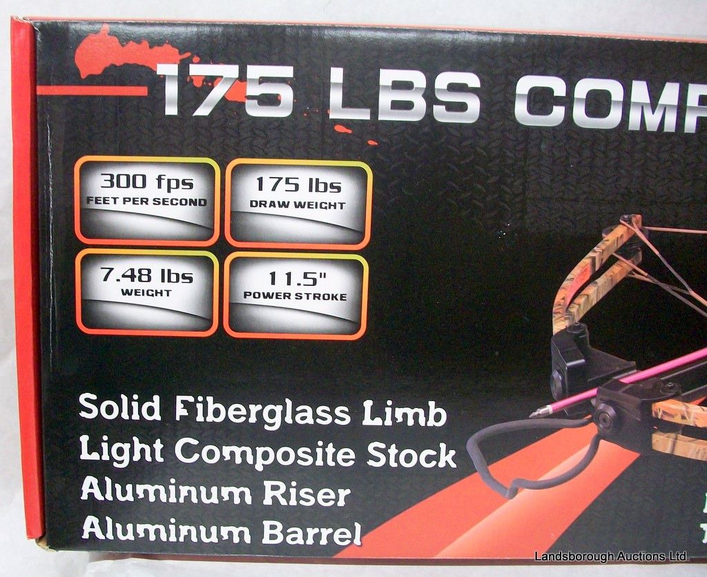 UNFIRED. QUIVER, BOLTS, RED DOT SCOPE, COCKING AIDE, SLING.