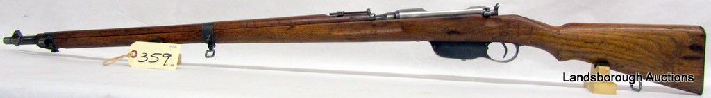 NON-RESTRICTED, BOLT ACTION, 8MM MAUSER, 30" BARREL, SN 2933P. WOOD HAS DENTS AND MARKS, BLUING WORN AND GREY, BORE GOOD.