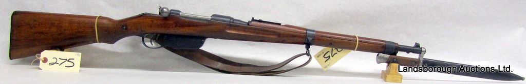 NON-RESTRICTED, BOLT ACTION, 8 X 56R, 20" BARREL, SN 7207D. WOOD HAS NUMEROUS DENTS AND MARKS, BLUING HAS SOME LIGHT RUSTING, BORE STAINED. COMES WITH BAYONET, SLING AND SIX CLIPS.